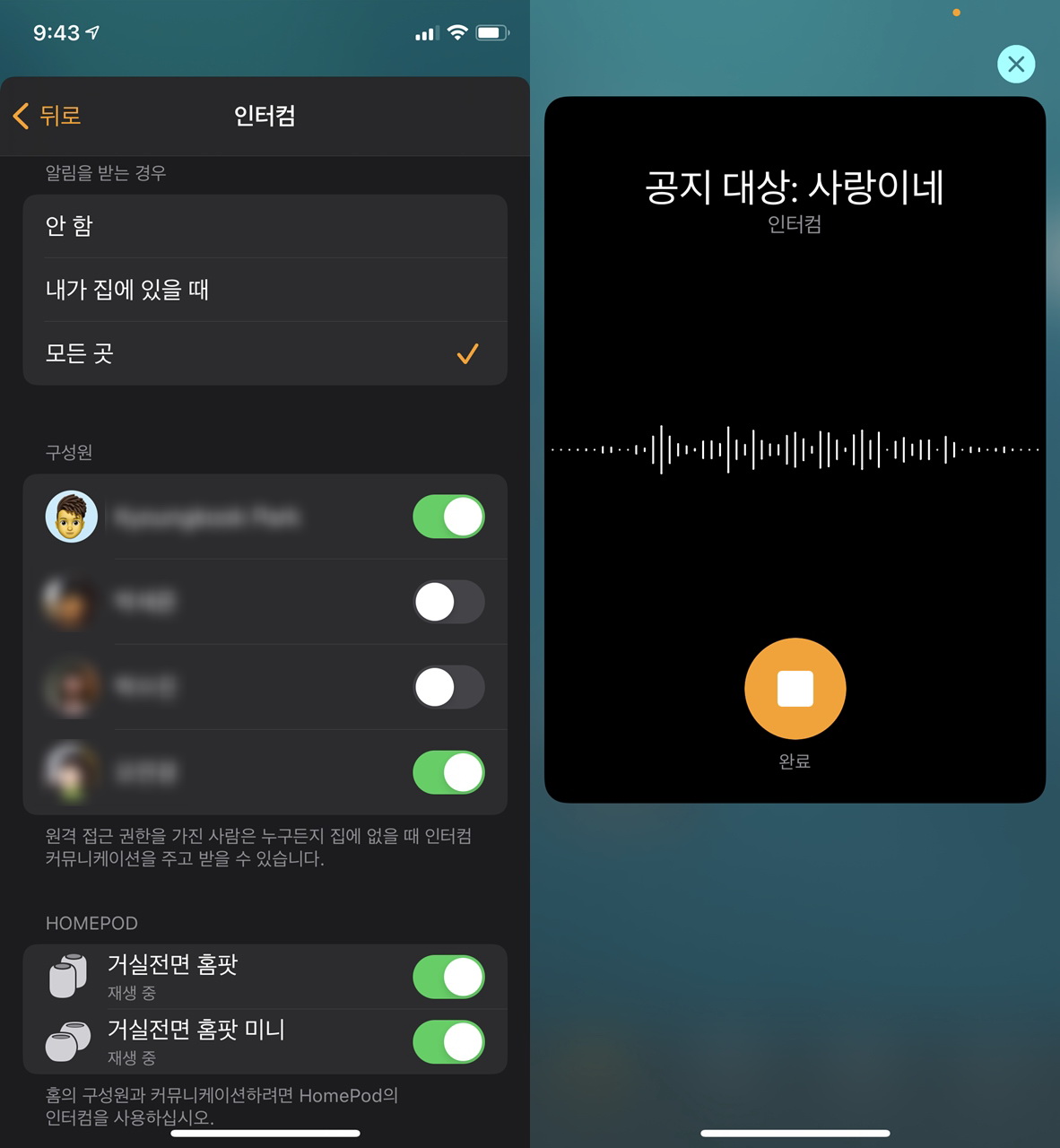 홈팟 인터컴 기능도 지난번에 테스트를 해보아서 이번엔 간단하게 점검만 하였다.