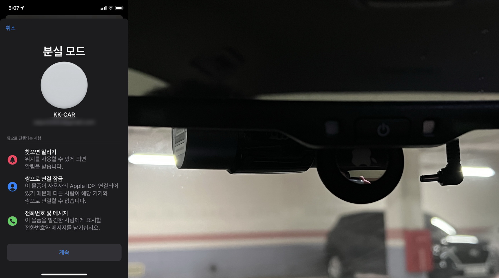 AirTag는 차량 내부에 있고 스마트폰은 외부에 있어서 그런지,