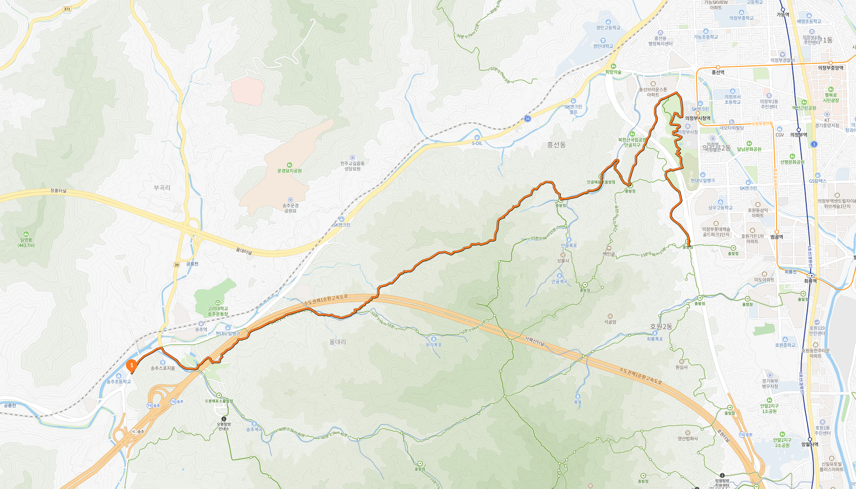 그리고 의정부 직동근린공원에서 한 번의 알바 후 호원테니스장 굴다리에서 산행을 종료하고,