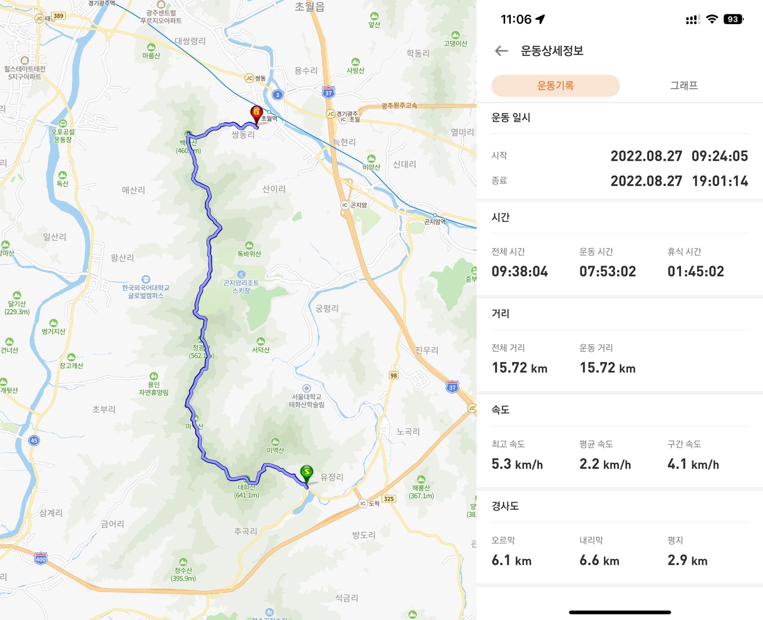 초반 광교산과 백운산 구간에서는 체력 만땅에 컨디션도 좋았으나,