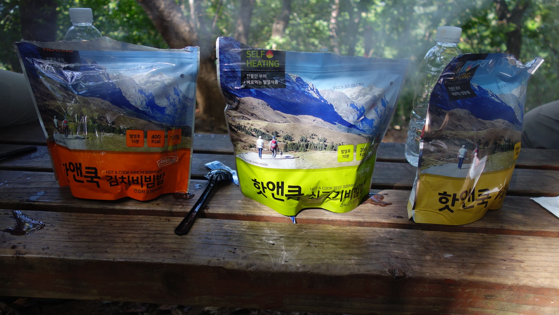휴양봉 오르막 직전에서 공룡능선 산행 시 사용할 전투식량을 테스트하였는데 그런대로 식사가 되더라.