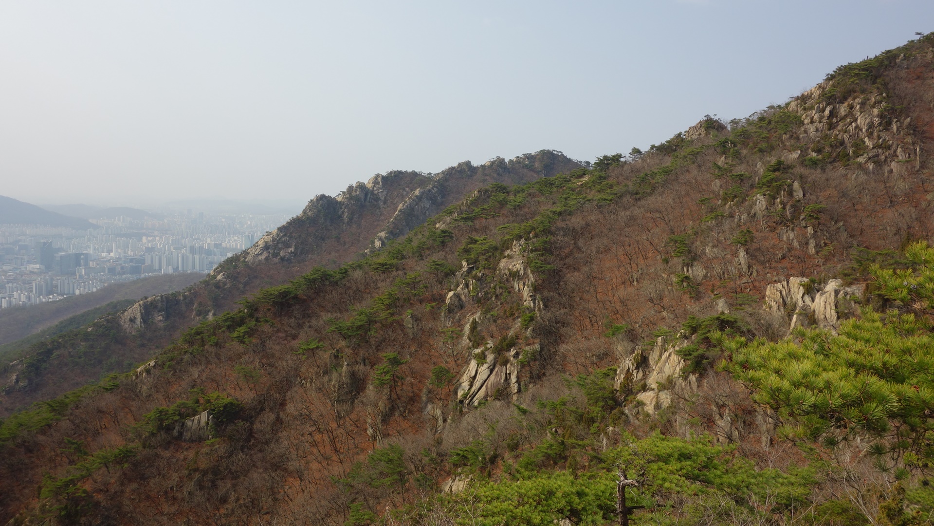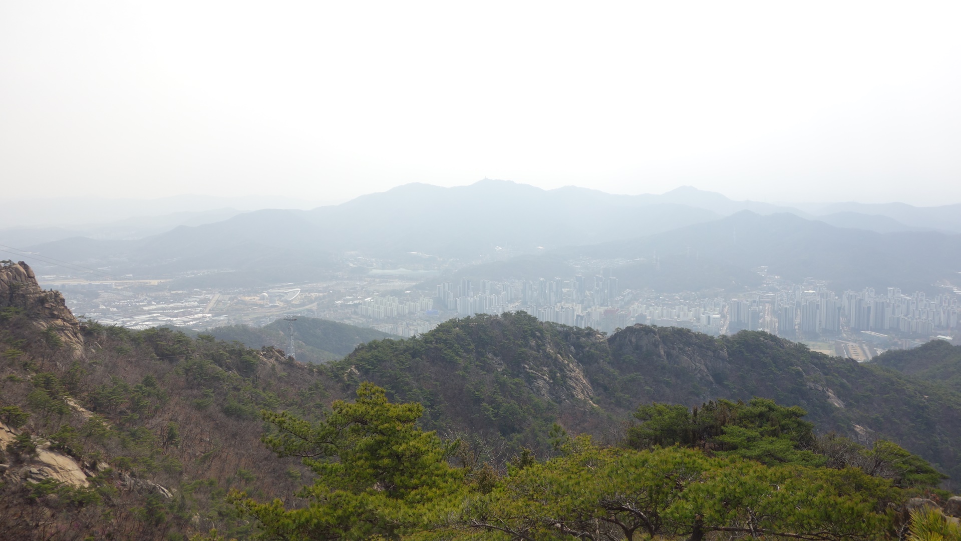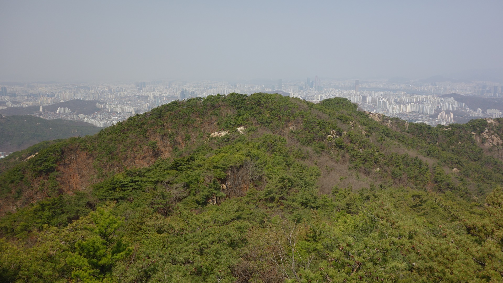 비록 미세먼지 때문에 쾌청하지는 않았지만 과천시가지와 청계산도 조망하면서,
