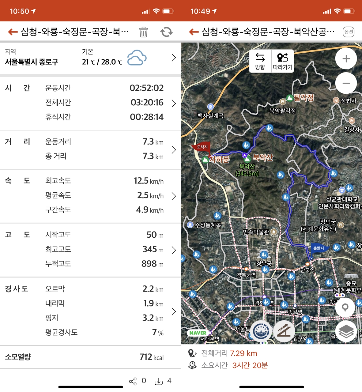 서울 한양도성길로 접어들어 숙정문과 백악마루를 경유하여 창의문까지 7.3km를 걸었다.
