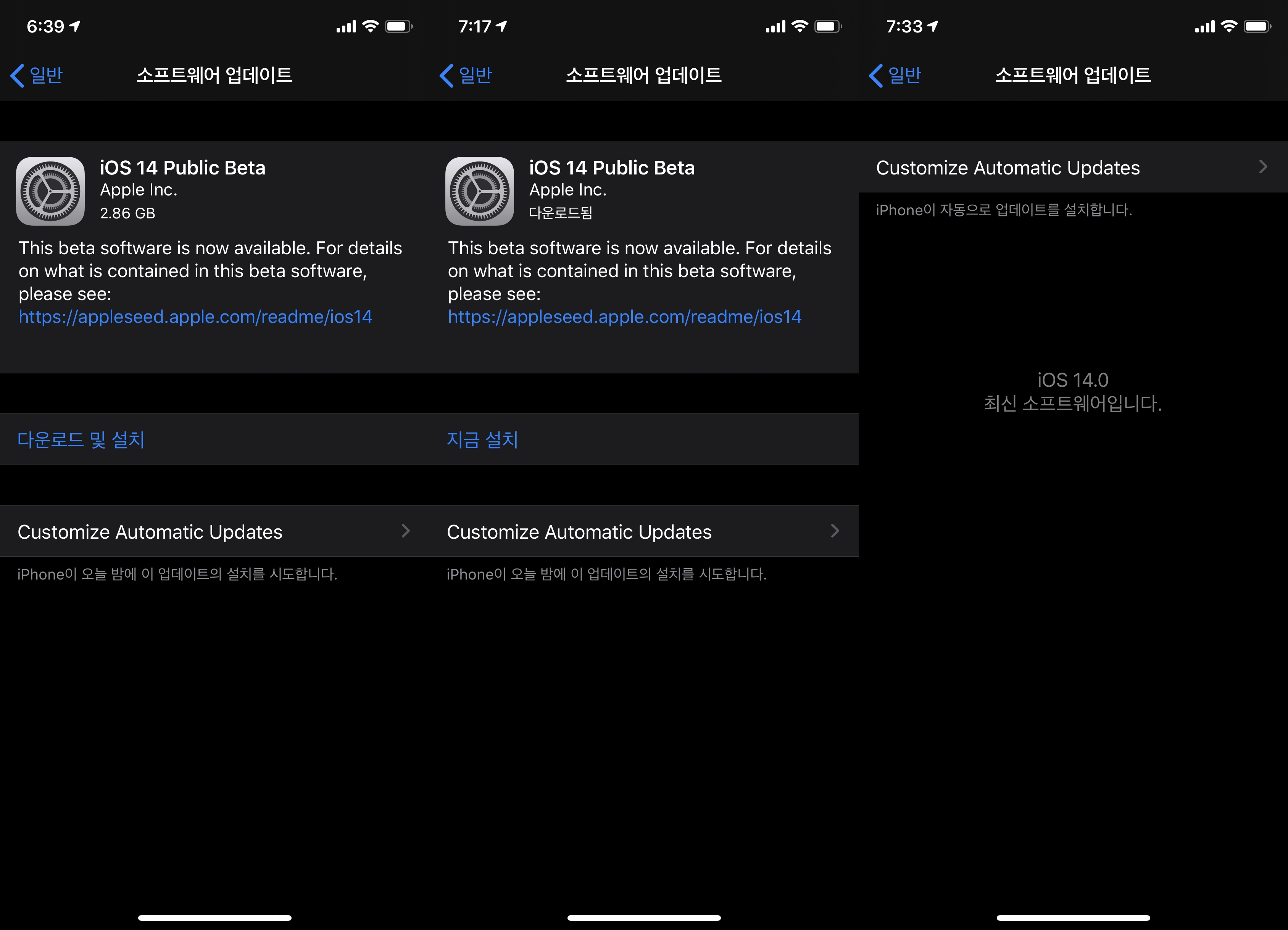 새벽같이 일어나서 iOS 14 퍼블릭 베타를 설치하고 미리 구경하여 보았다.