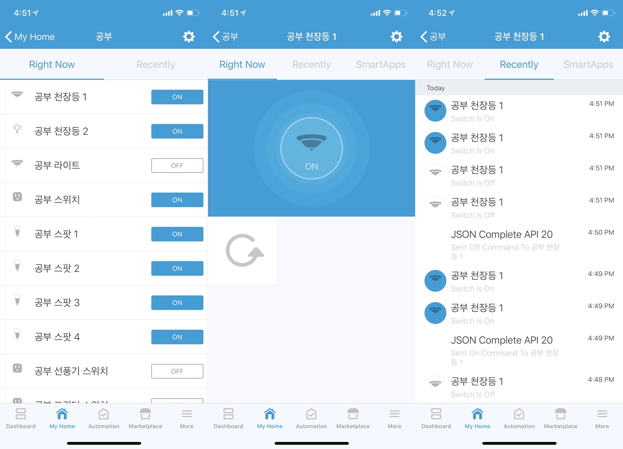 이 방법은 연동 경로(2번 경로+3번 경로)가 더 길어서 스마트싱스 연동보다도 조금 더 느린 느낌이다.