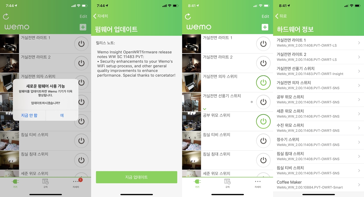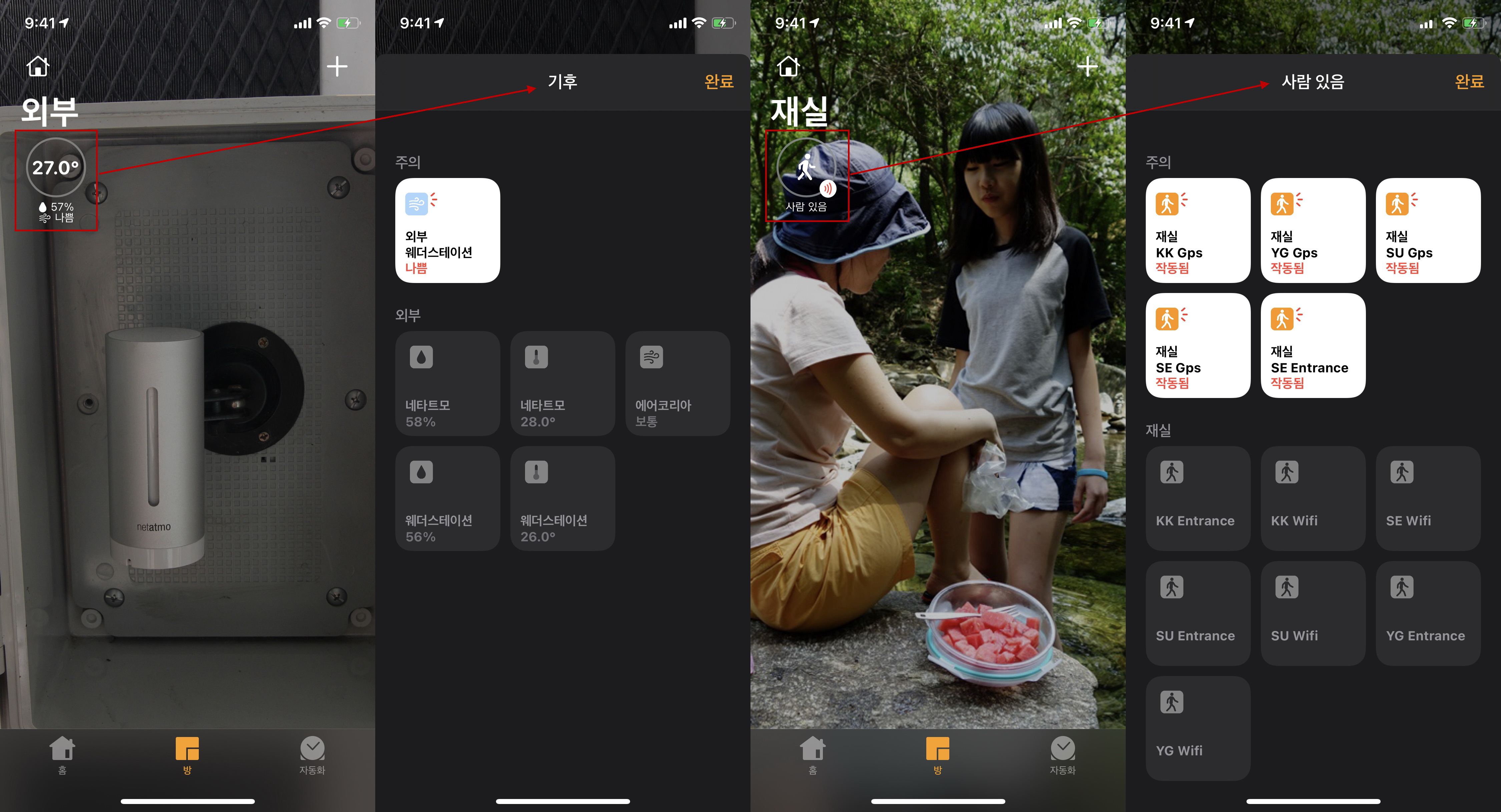 3)과 4)번 네트워크 카메라 기능은 홈킷 네이티브 카메라가 없어서 아쉽게도 구경하지 못했다.