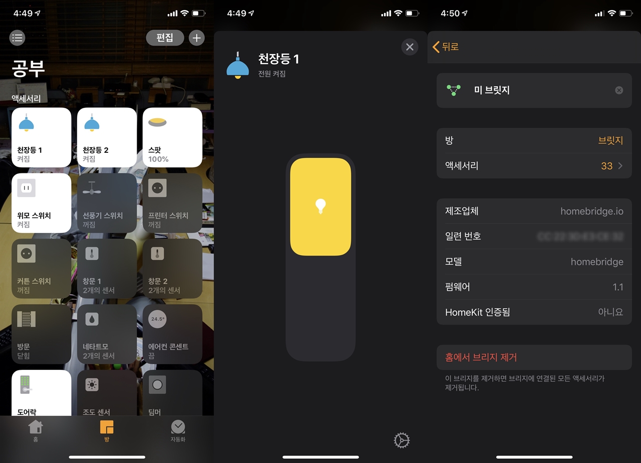 그리고 마지막으로 스마트싱스 허브에서 홈브릿지로 홈킷까지 연동하여 보았는데,