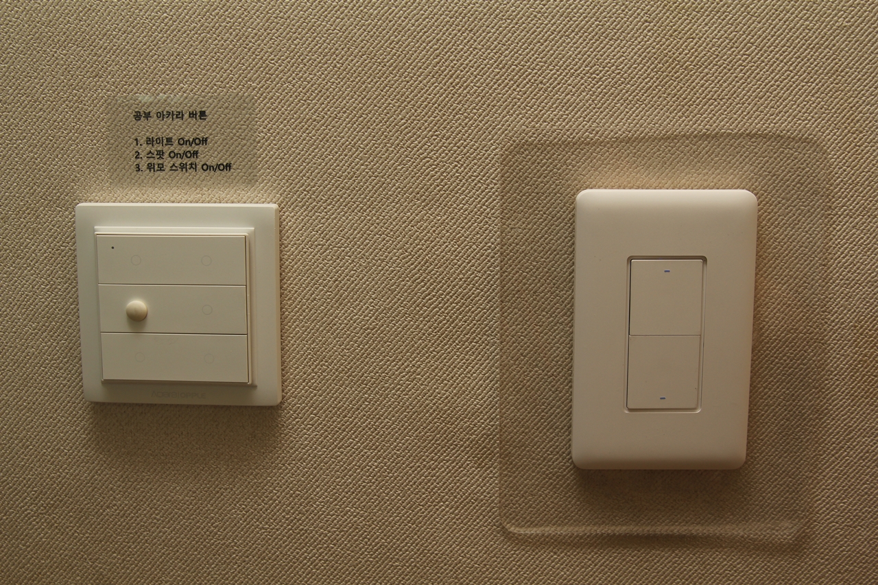 이 놈이 1구 스위치라는 제약은 도무지 극복이 불가하여 최근에 아카라 벽 스위치로 교체를 하였다.