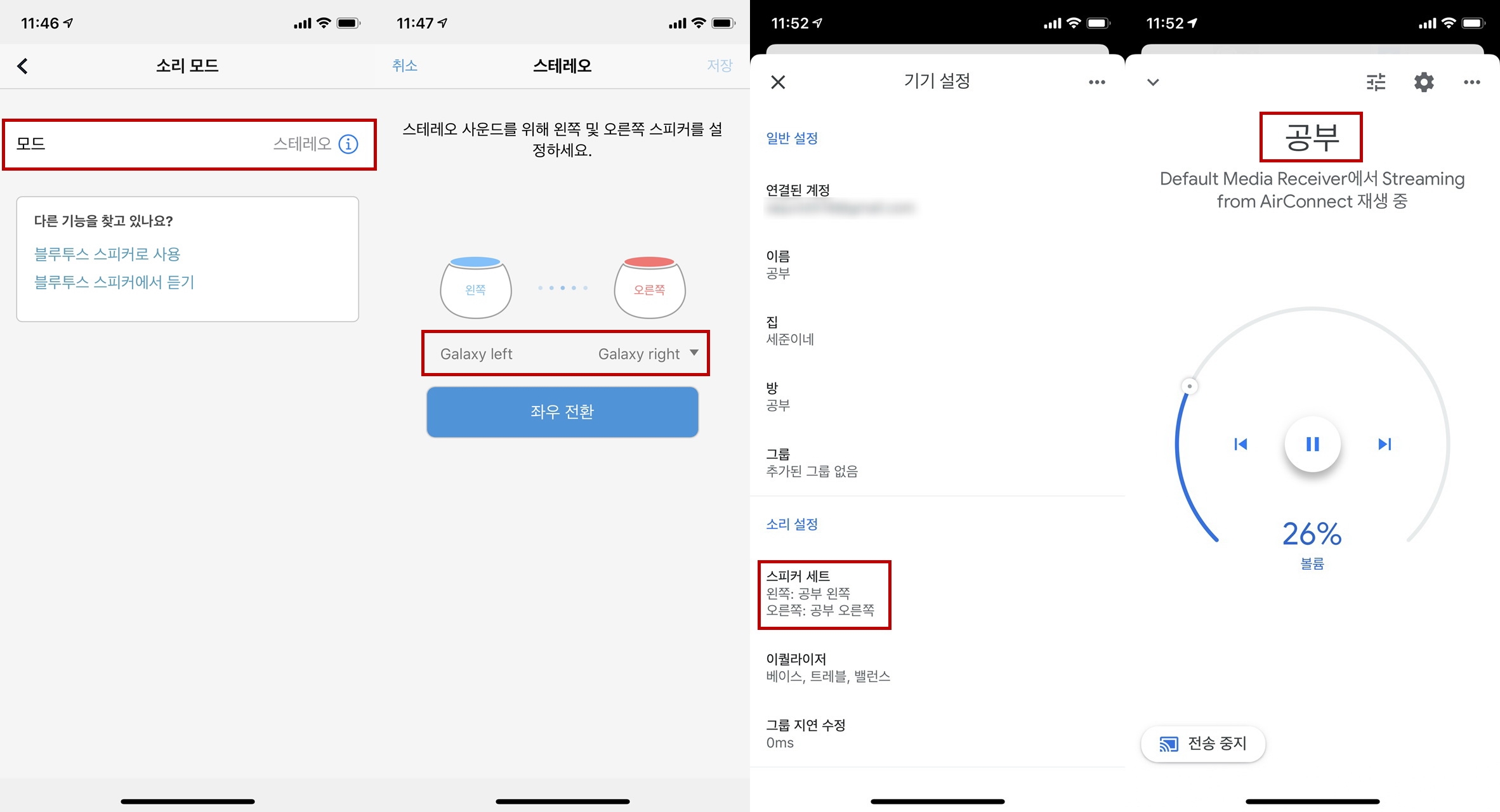 갤럭시 홈 미니와 구글 홈 미니 모두 스테레오 모드의 설정 방법은 유사하나,