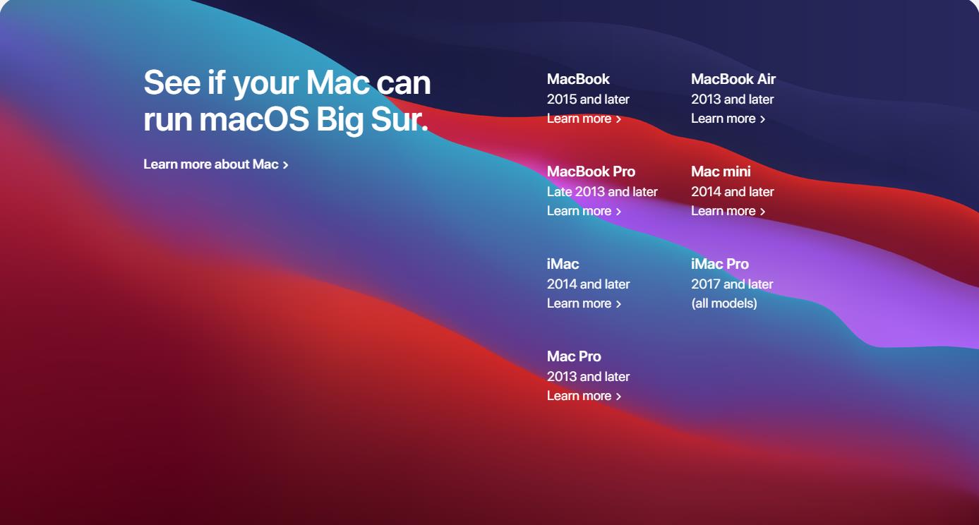macOS 11으로 올라갈 수 있는 맥 디바이스는 위의 사진과 같으니 참고하시고,
