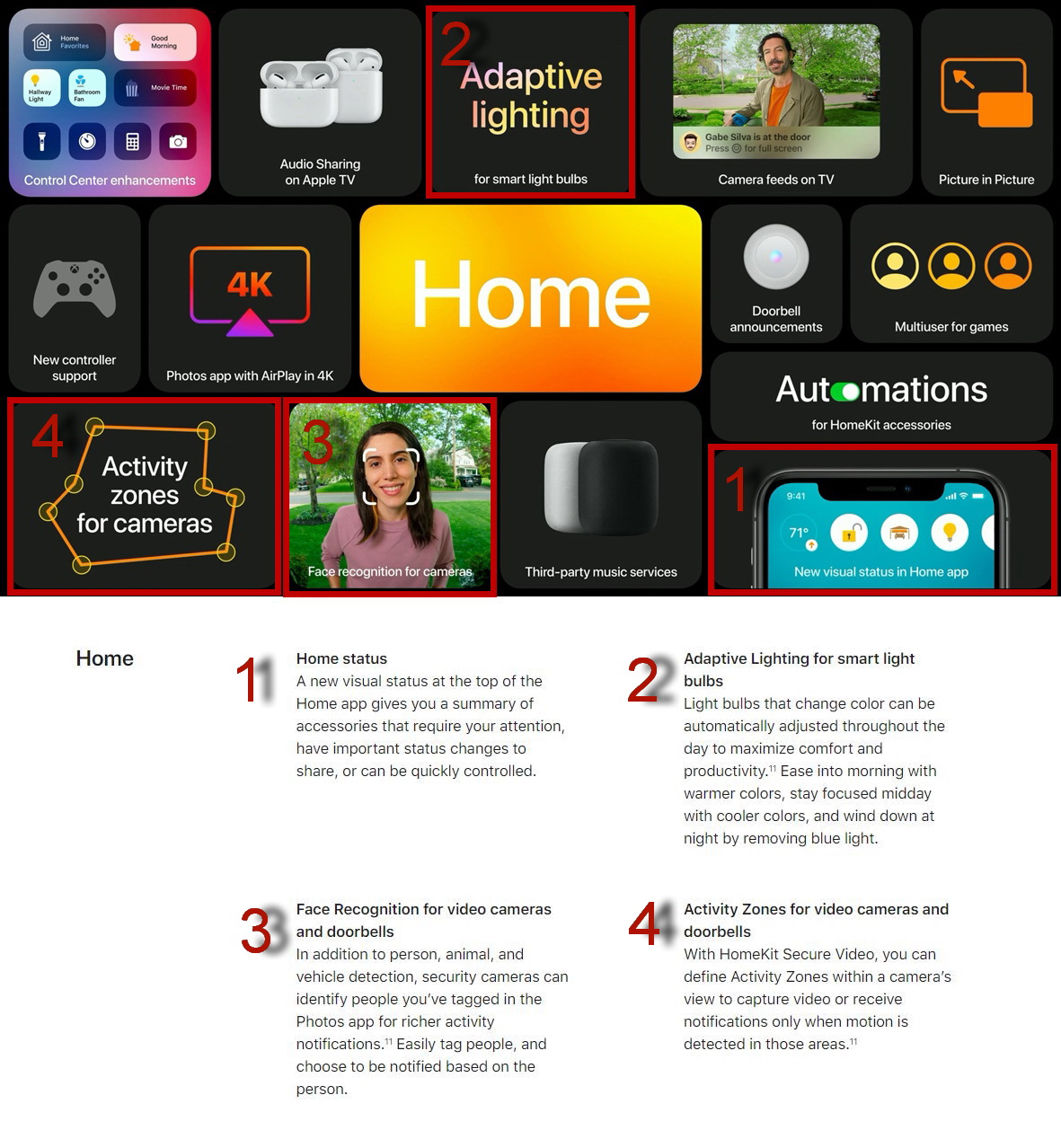 1) New visual status in Home app과 2) Adaptive lighting 기능은 iOS 14와 완전 동일하며,