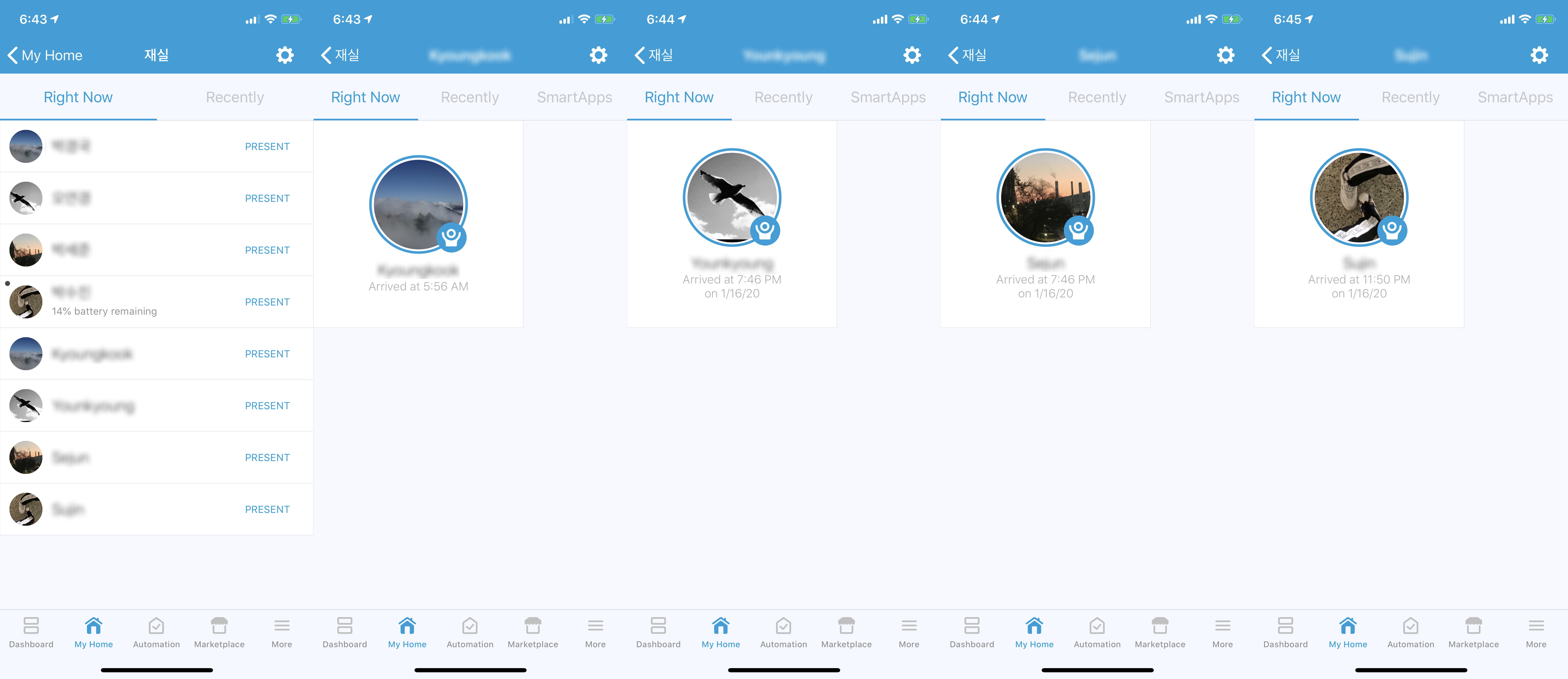 최초 설치 때에는 재실(Presnet)과 외출(Not in present)을 수시로 반복(Flapping)하는 버그가 있어서,