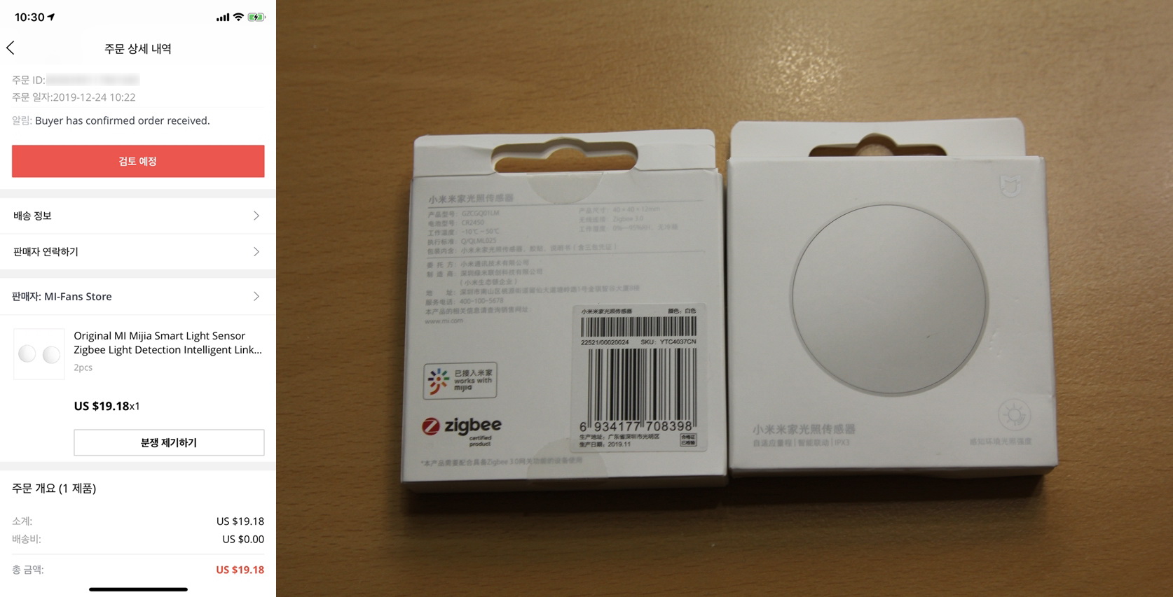 Zigbee 3.0을 채용한 샤오미 신형 라이트 센서의 성능이 어떨지 궁금하여 알리에서 19.18달러에 2개를 질렀다.