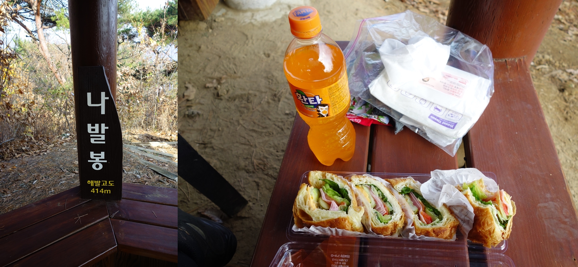 그리고 오후 1시가 조금 넘어서 두번째 봉우리인 나발봉에 올라서서 샌드위치와 음료수로 간단한 점심 식사를 하였다.