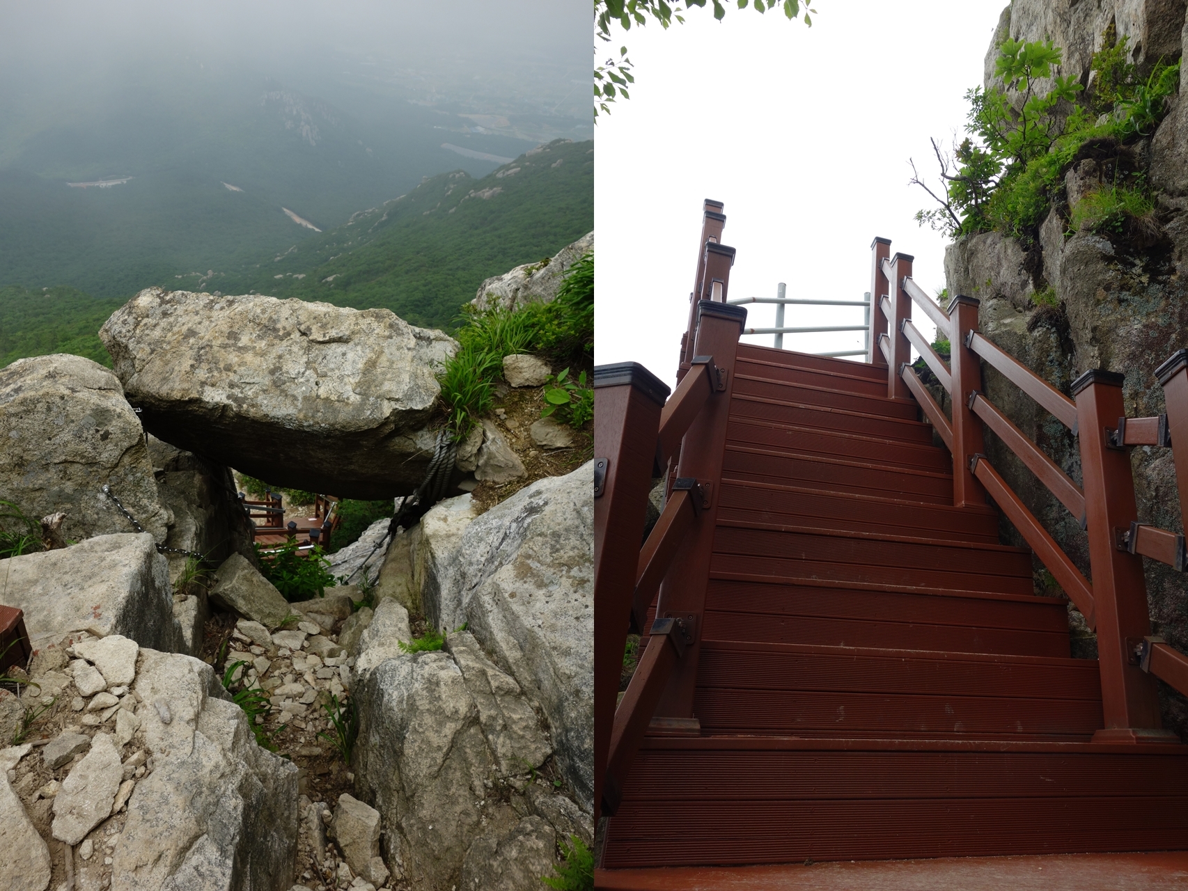 예전에는 로프에 의지하여 어렵게 내려왔던 구간에 계단이 놓여있어서