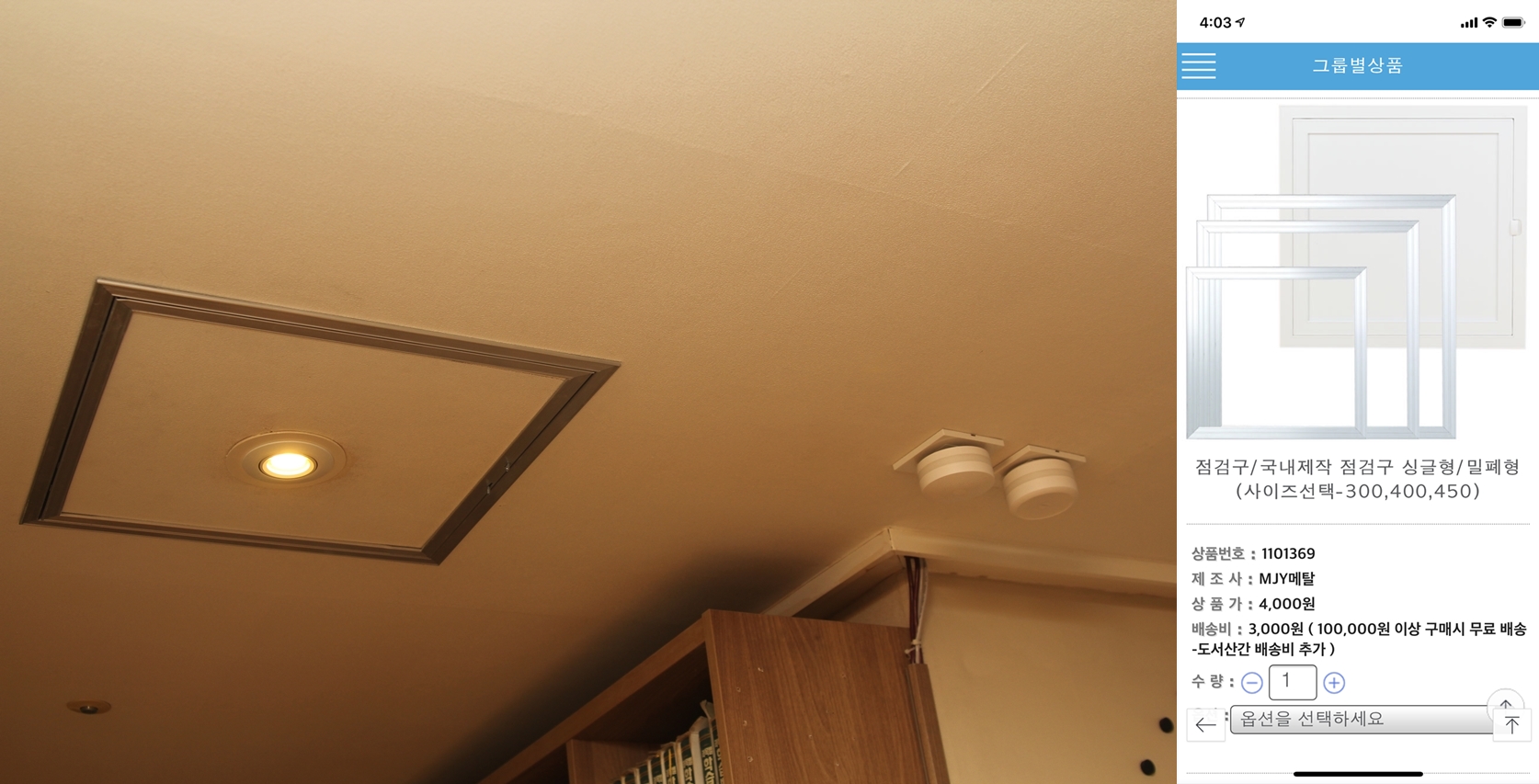 기성 점검구엔 4가지 종류(300*300, 400*400, 450*450, 600*600)가 있었는데,