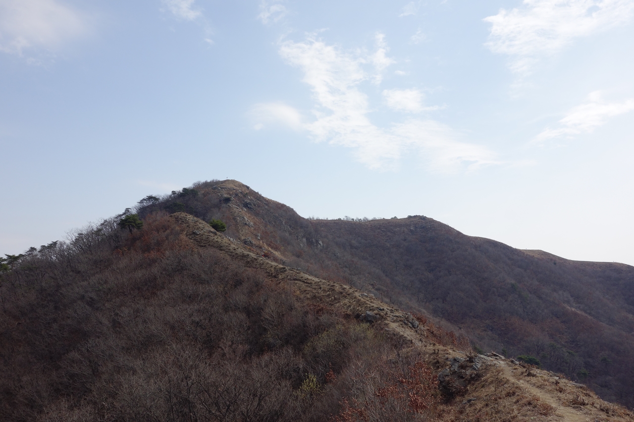 시계청소 때문에 민둥인 능선길을 따라서 정상까지 올라야 했는데,