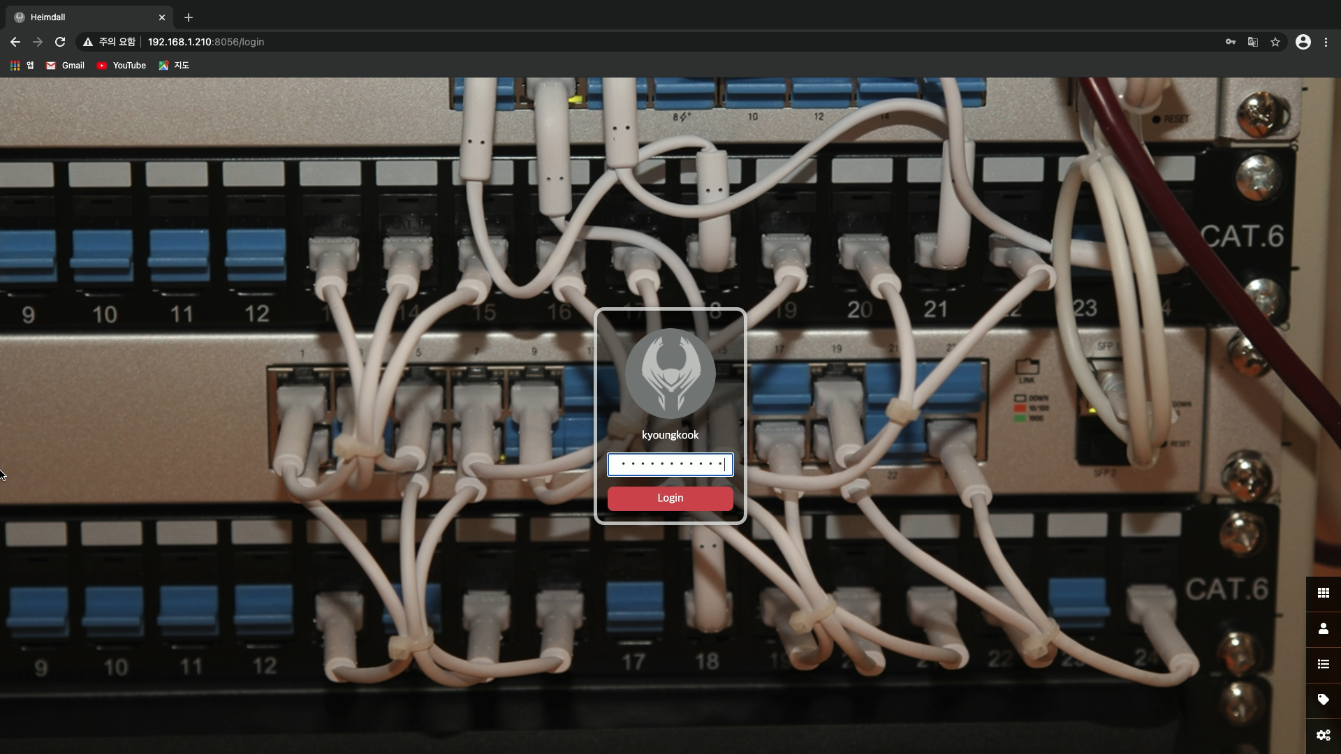 반드시 사용자 계정을 생성하여 로그인시 비밀번호를 입력하고 heimdall에 진입하는 것이 보안상 안전하며,