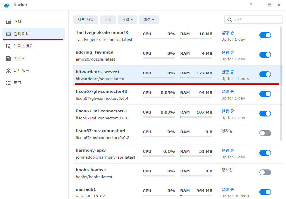 오늘은 지난번 시놀로지 도커에 설치한 오픈 소스 암호 관리 서비스인 bitwarden을