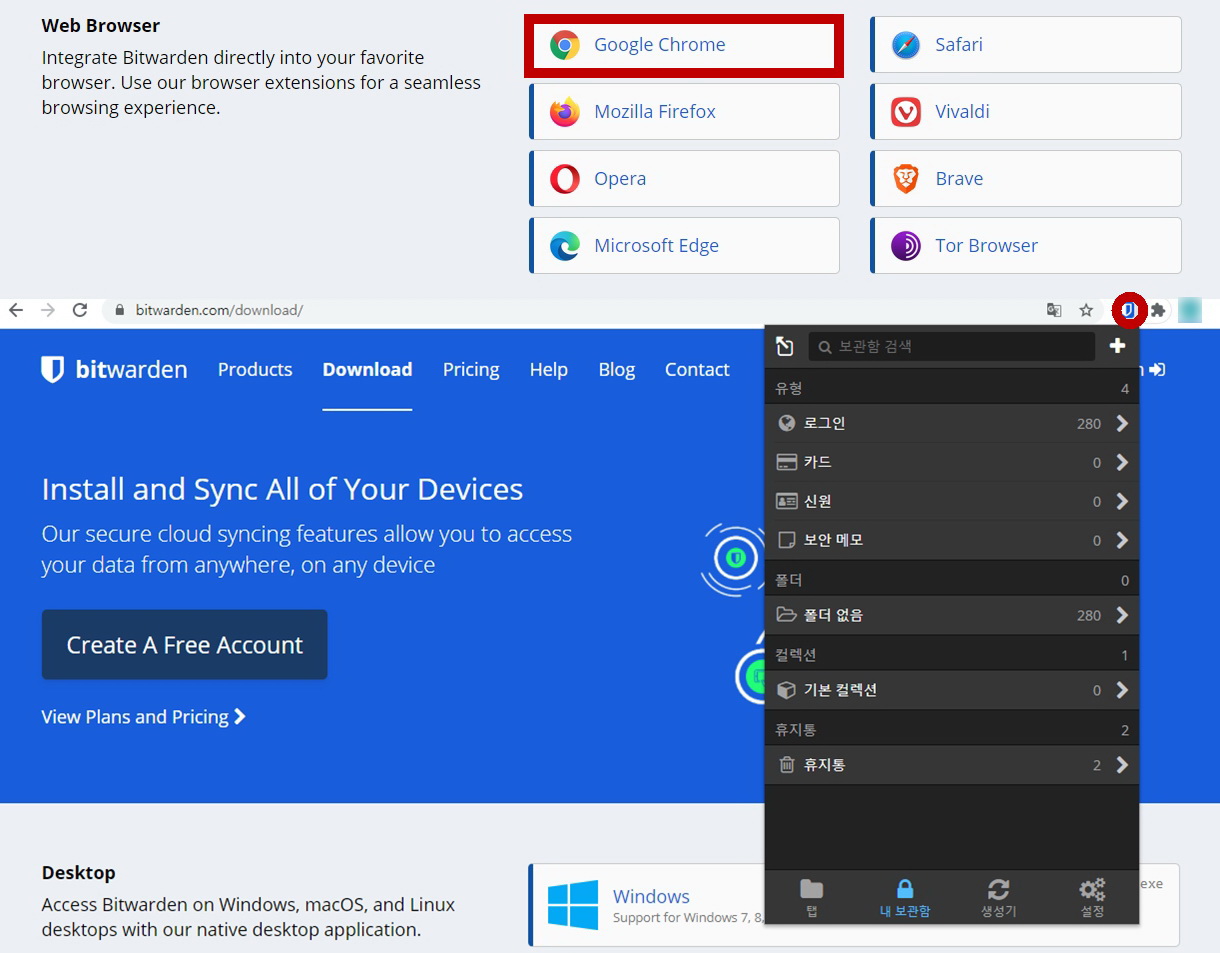 bitwarden 보관함, Desktop, Mobile간의 데이타 동기화도 매우 안정적이어서 강추하는 바이다.