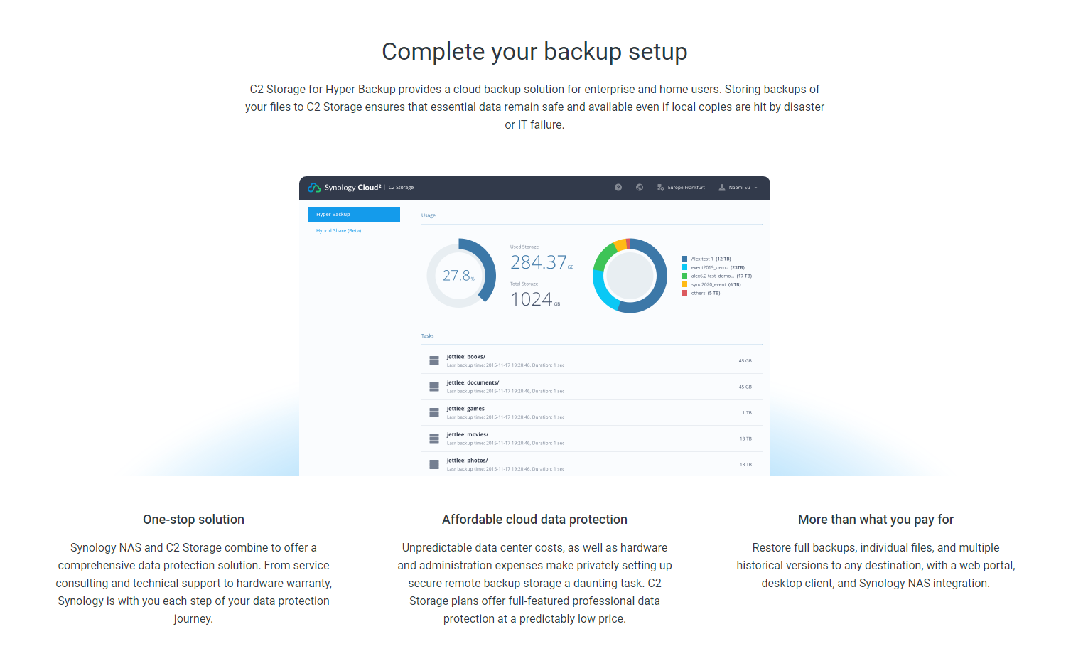 C2 Storage for Hyper Backup은 시놀로지 나스의 중요 파일을 클라우드에