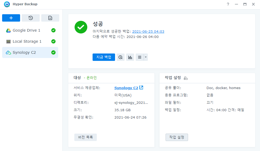 - 2021.06.25 시놀로지 C2 Storage for Hyper Backup