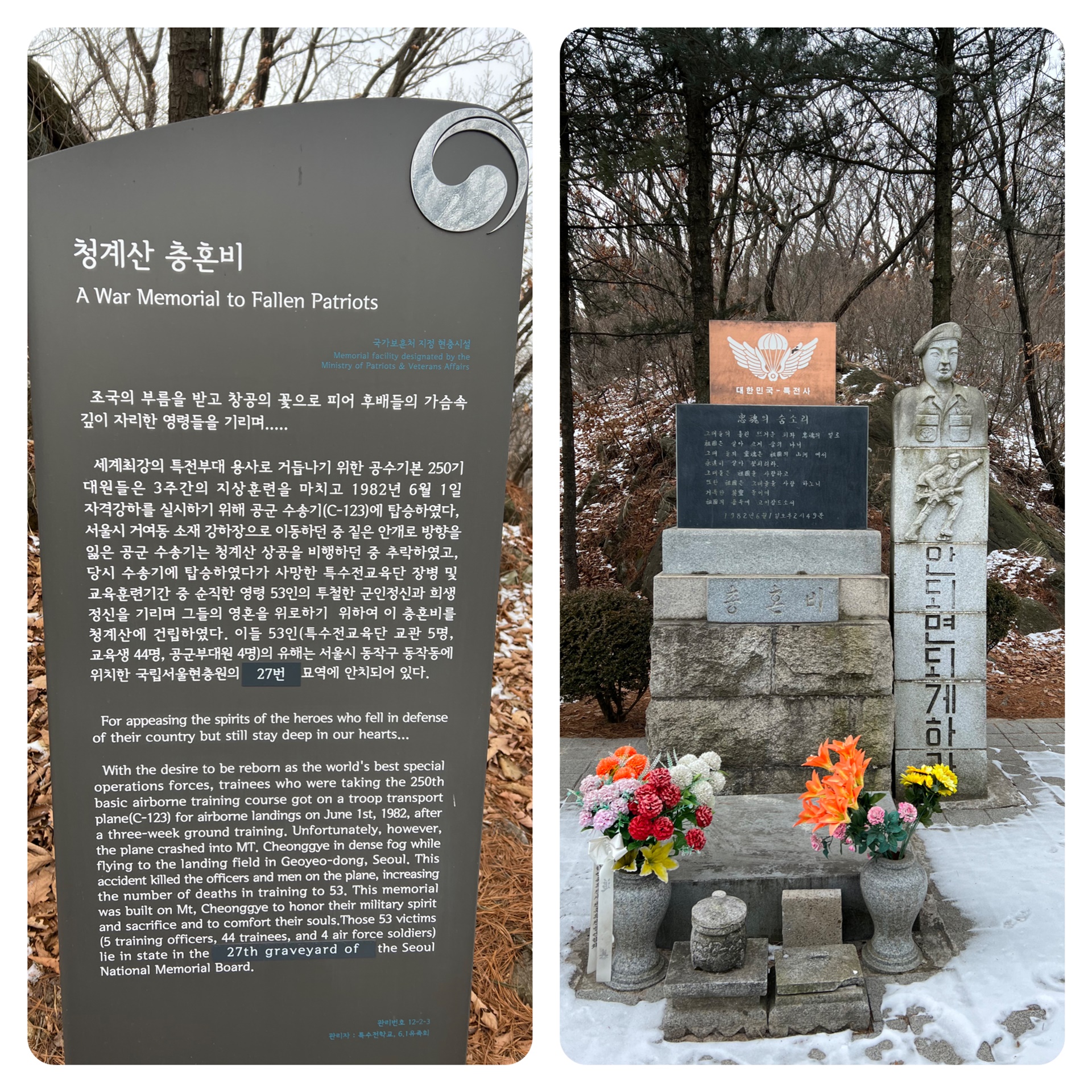 공수부대 53명이 순직한 청계산 충혼비에도 난생처음 찾아보았다.