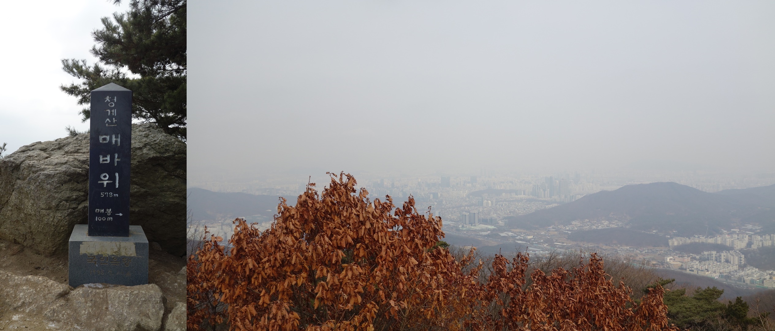 그리고 강남으로의 조망이 좋은 매바위에도 올라 보았으나, 오늘은 날씨가 흐려서 뿌옇게 보이더라.