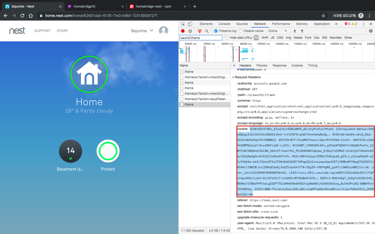 구글 계정으로 네스트 온도조절기와 연동하기 위해서는 홈브릿지의 config.json에 "googleAuth"를 사용해야 하는데,