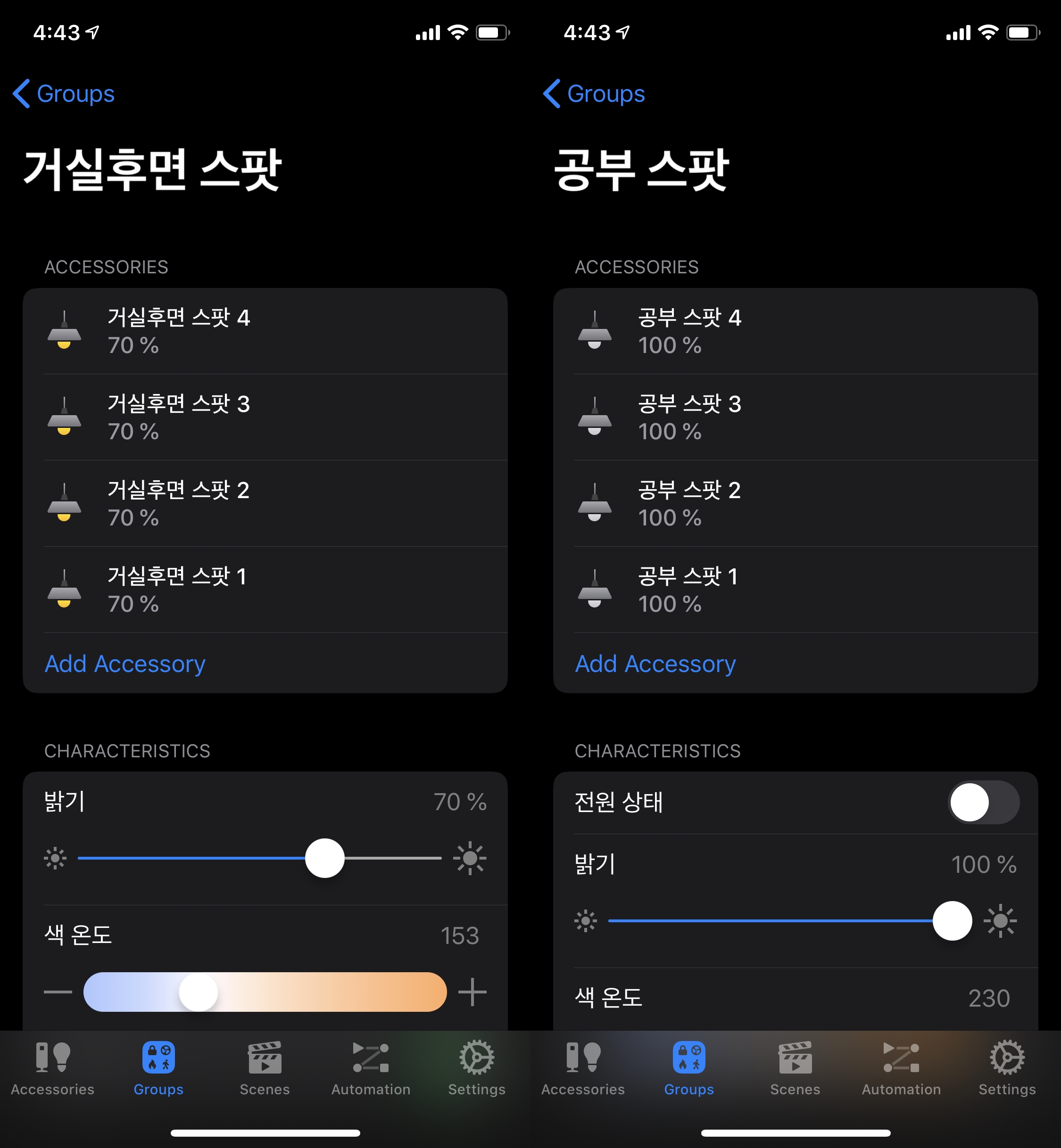 Home+ 4 앱에서는 액세서리 그룹을 그룹 메뉴에서만 조회가 가능하여 불편하였다.