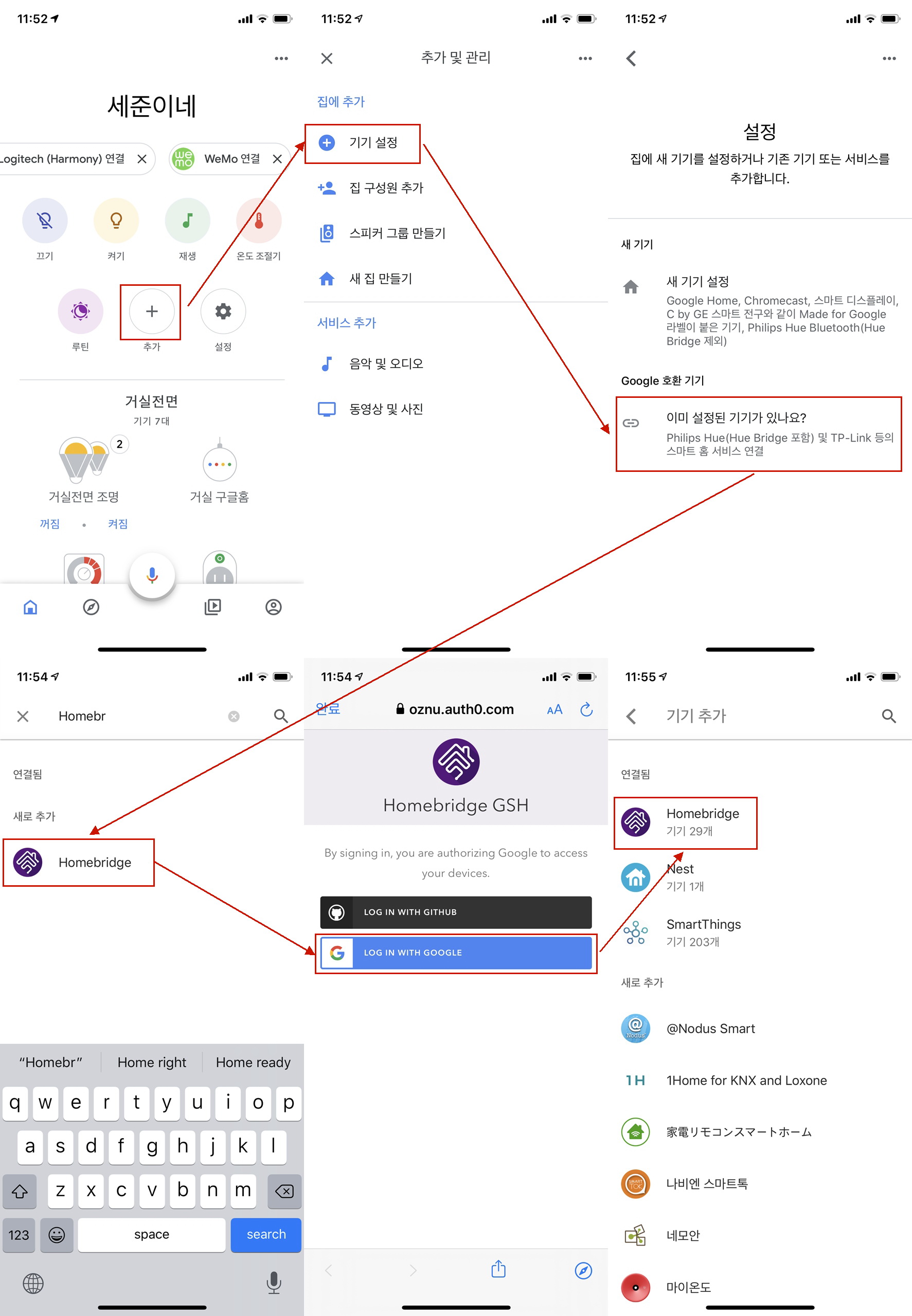 또한 구글 홈 어플에서도 위의 그림처럼 뚝딱뚝딱 계정을 연결하면 구글 홈에 홈브릿지 액세서리가 올라온다.