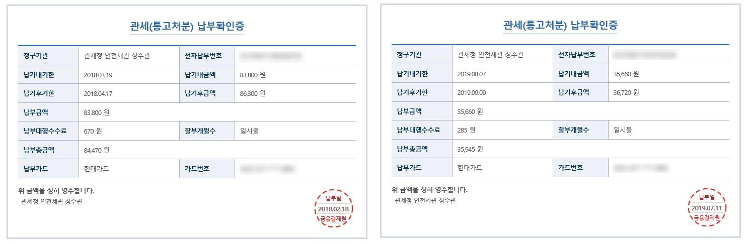 이번 흰둥이 구매시에는 컴퓨터 관련용품으로 분류가 되었는지 부가세 10%만 지불하고 통관을 하였다.