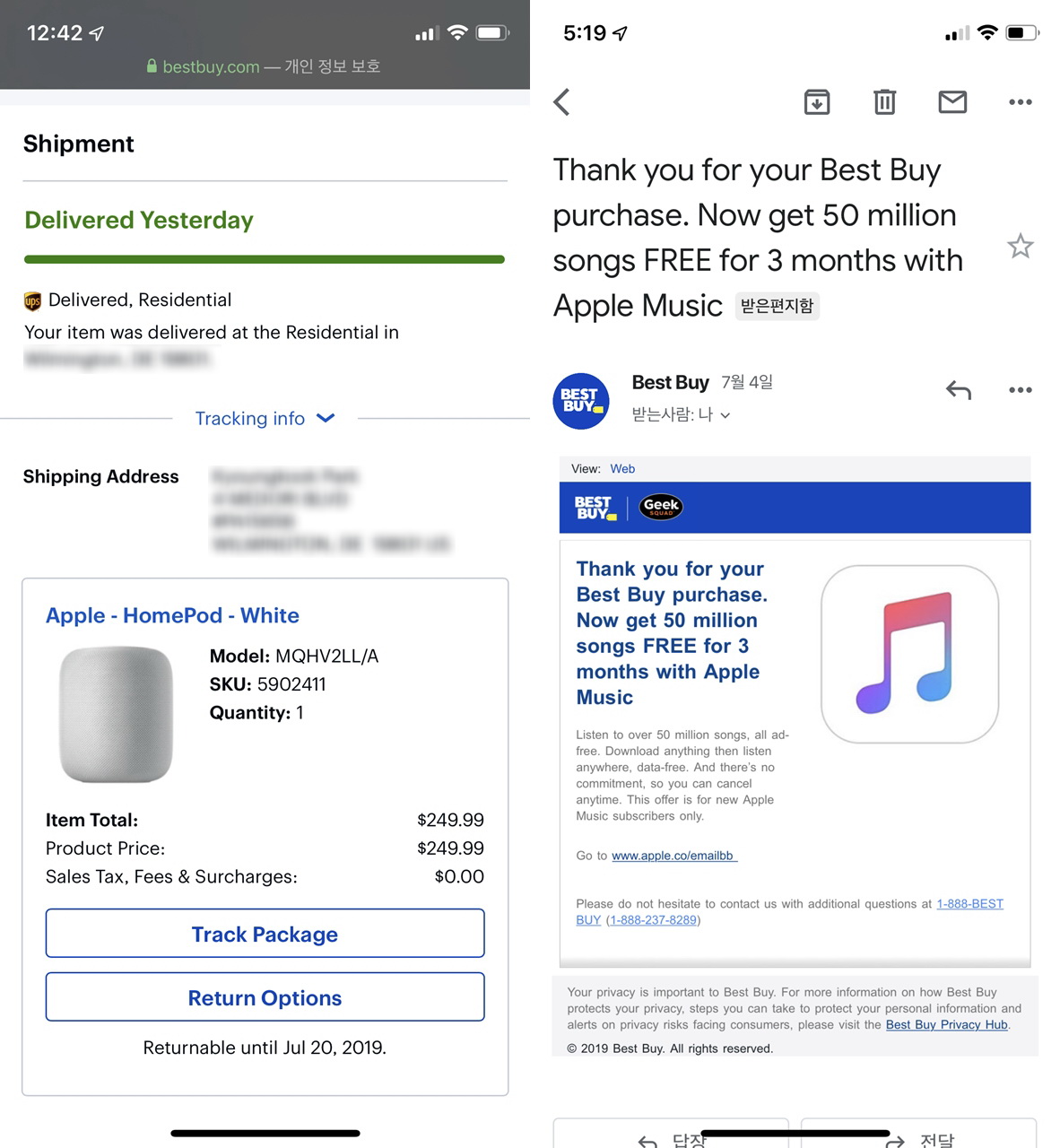 이달 초 미국 베스트바이( https://www.bestbuy.com/ )에서 홈팟(HomePod)을 구매하다가,