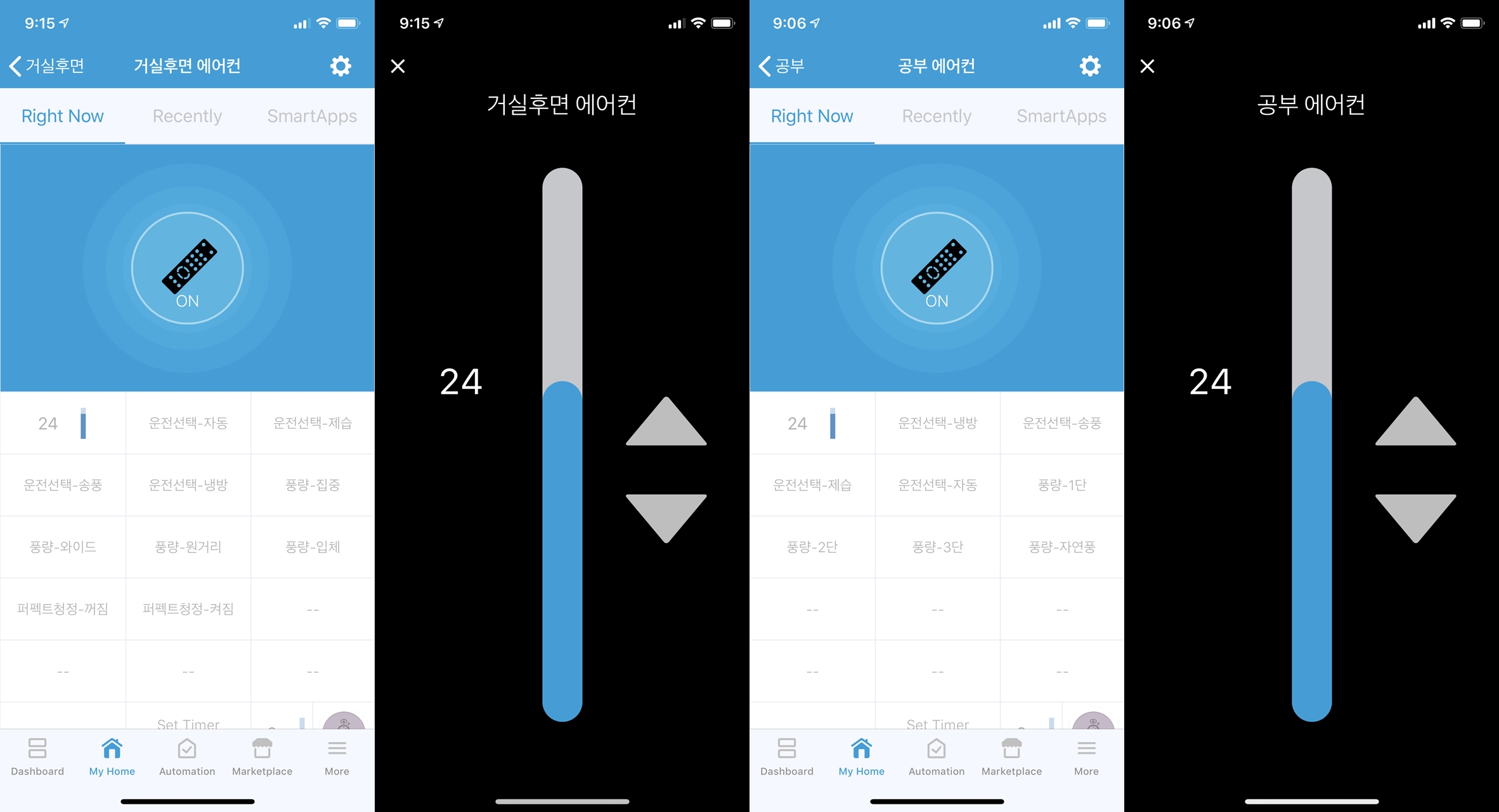 에어컨 리모콘의 물리적인 버튼들과 완전 동일한 조작과 세밀한 자동화가 가능하고,