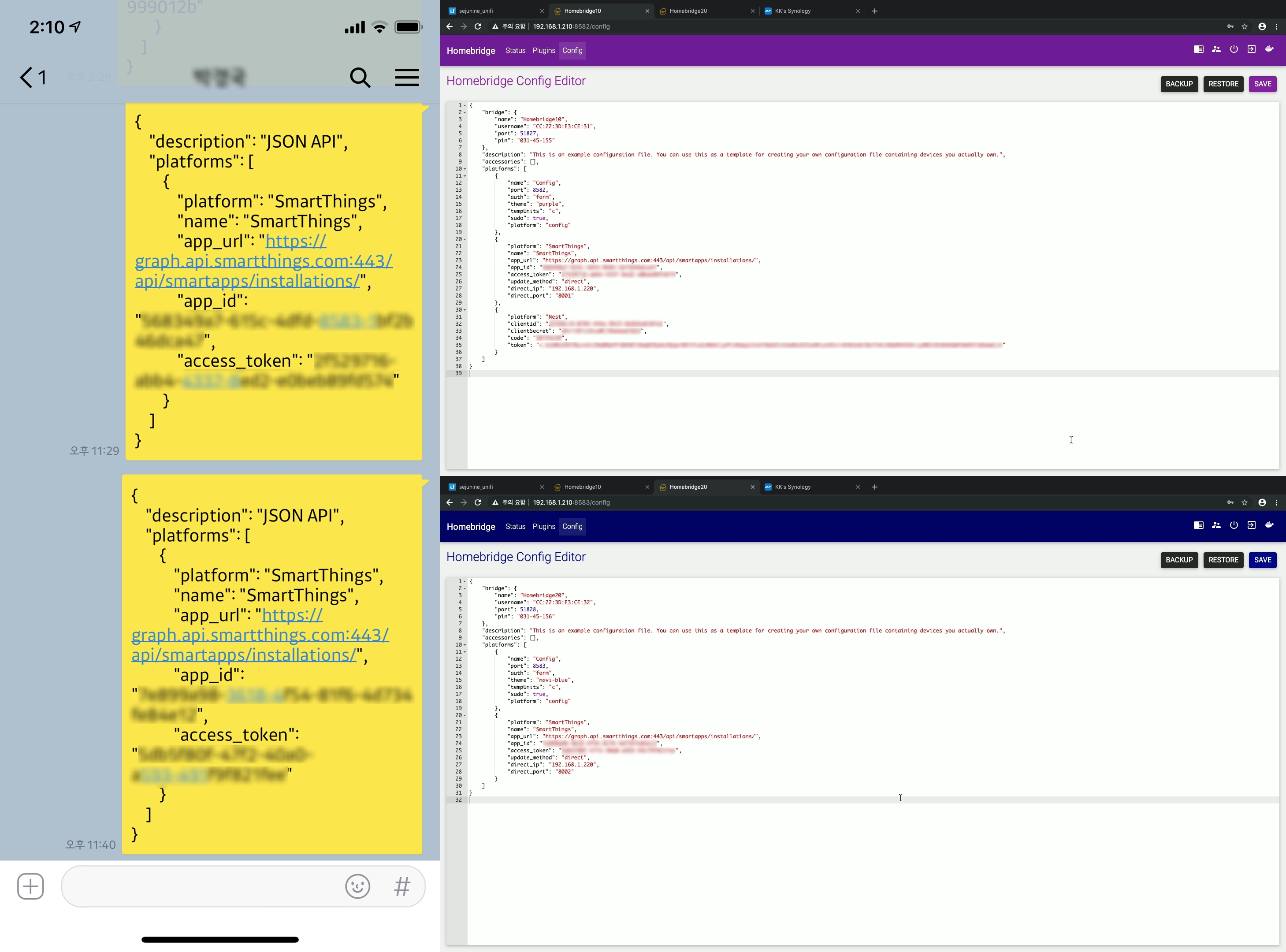 또한 이번 기회에 신형 플러그인(homebridge-smartthings-tonesto7)으로 변경을 시도하였으나,
