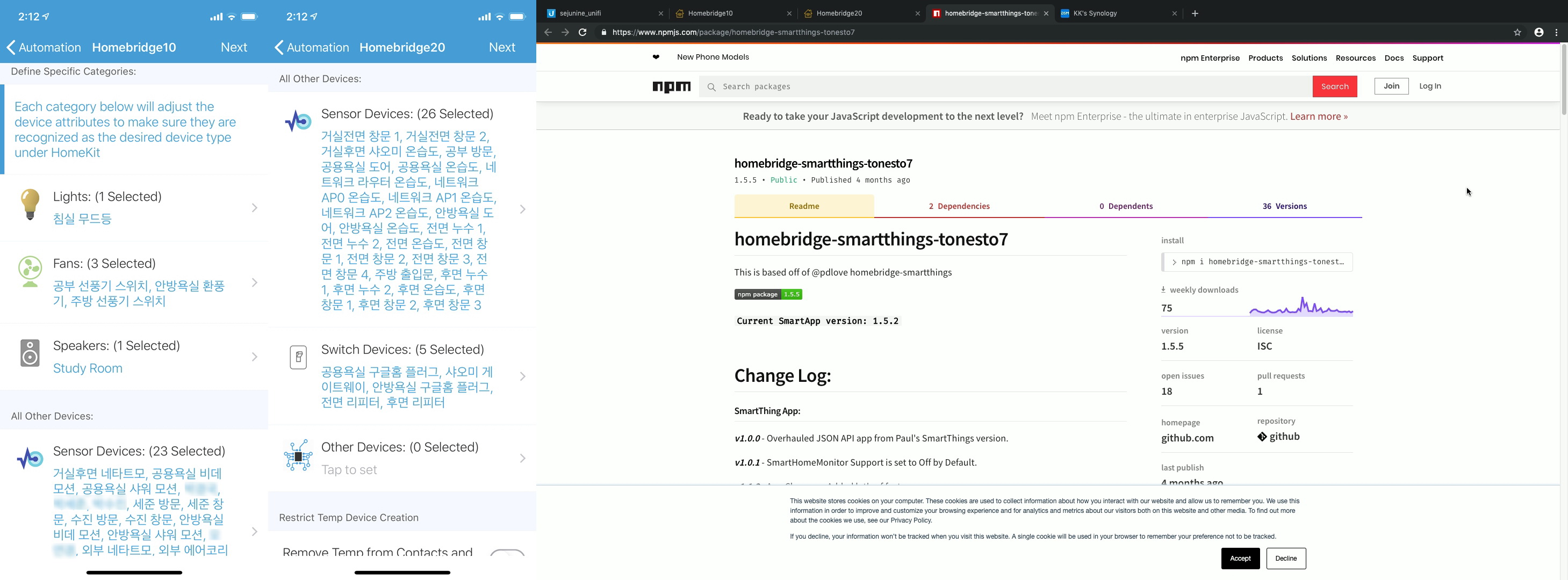스마트싱스 카페에서 활동하며 홈킷의 대가이신 신짱님의 홈브릿지 플러그인을 적용하여,