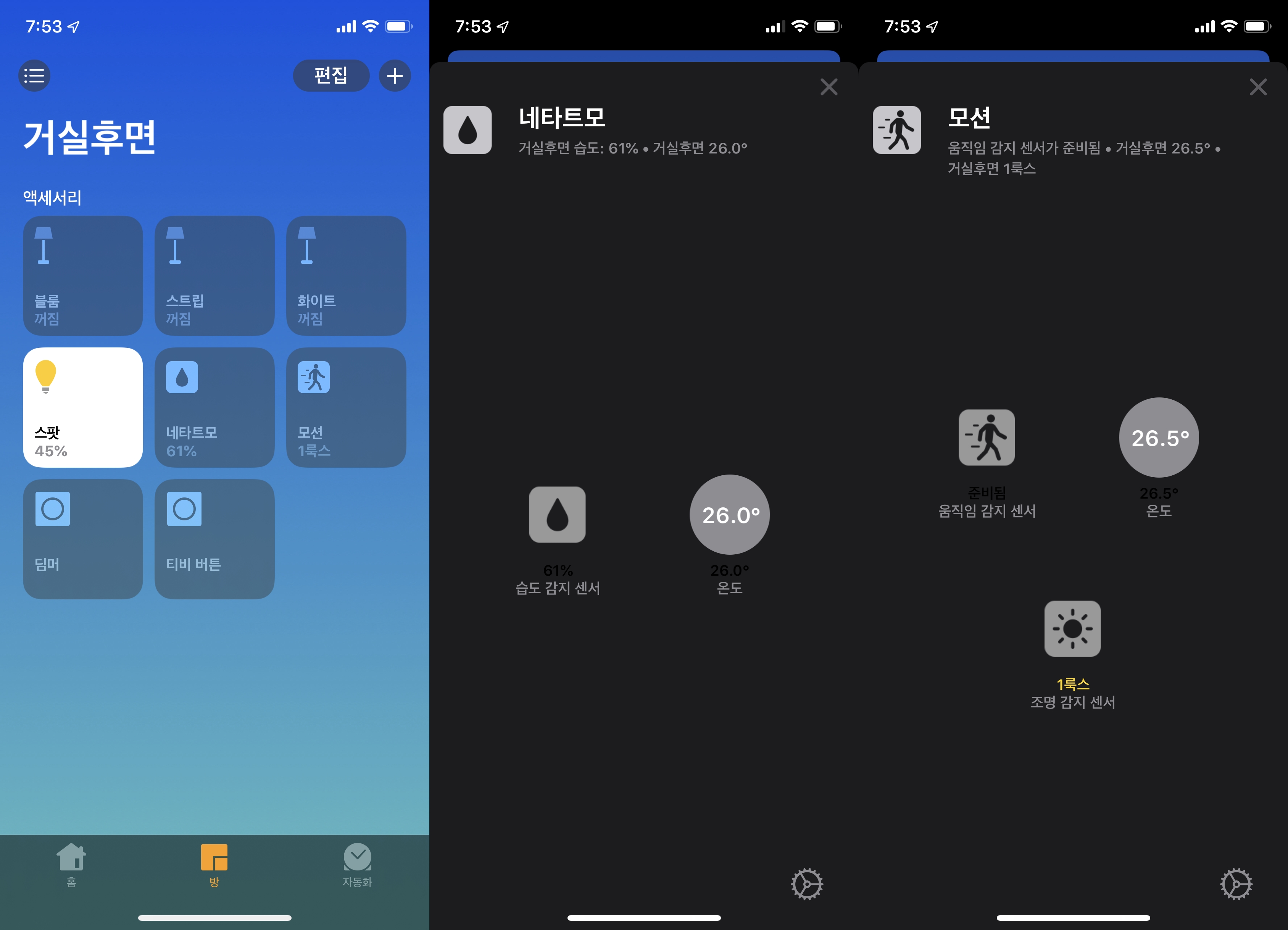 3. 단순한 모션센서들은 홈앱에서 과감하게 날렸다.
