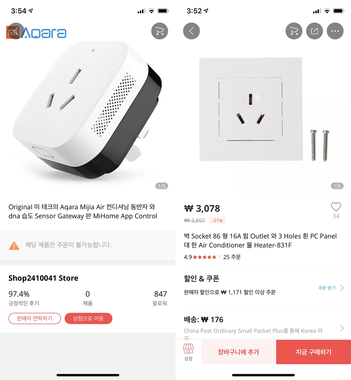 알리 익스프레스에서 33.58 달러와 23.32 달러에 각각 구매를 하였다.
