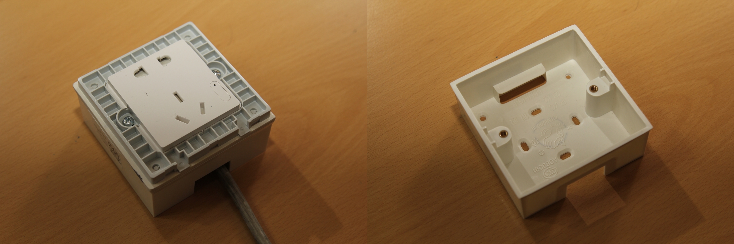 아카라 벽 콘센트(허용 전류 10A)를 19.59달러에 콘센트 박스를 0.94달러에 구매하여,
