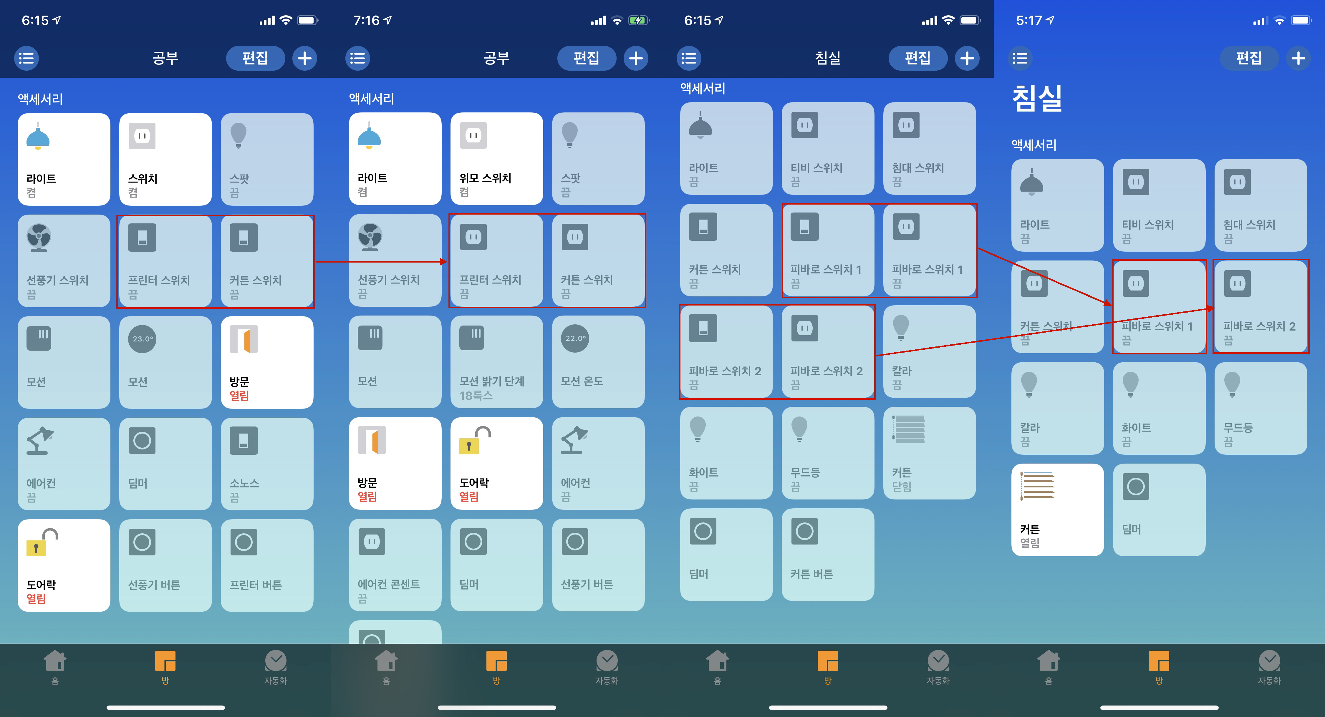 과거에 아날로그 스위치로 동시에 켜지던 전구들이 필립스 휴로 바뀌면서 각각의 액세서리로 등록이 되는데,