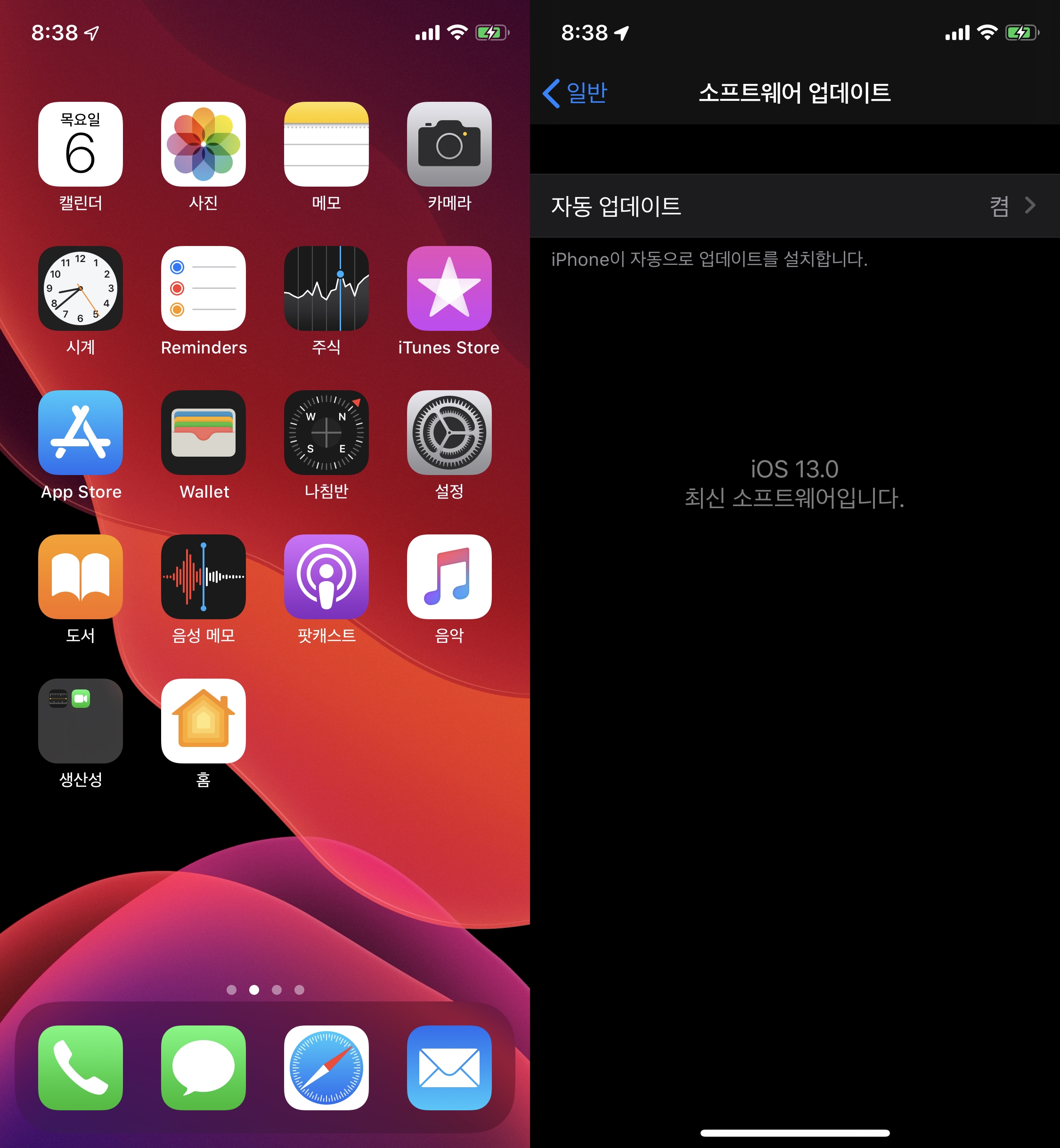 iOS 12에 비하여 반응 속도도 빠르고 앱(App)들의 호환성도 별 문제가 없어서,