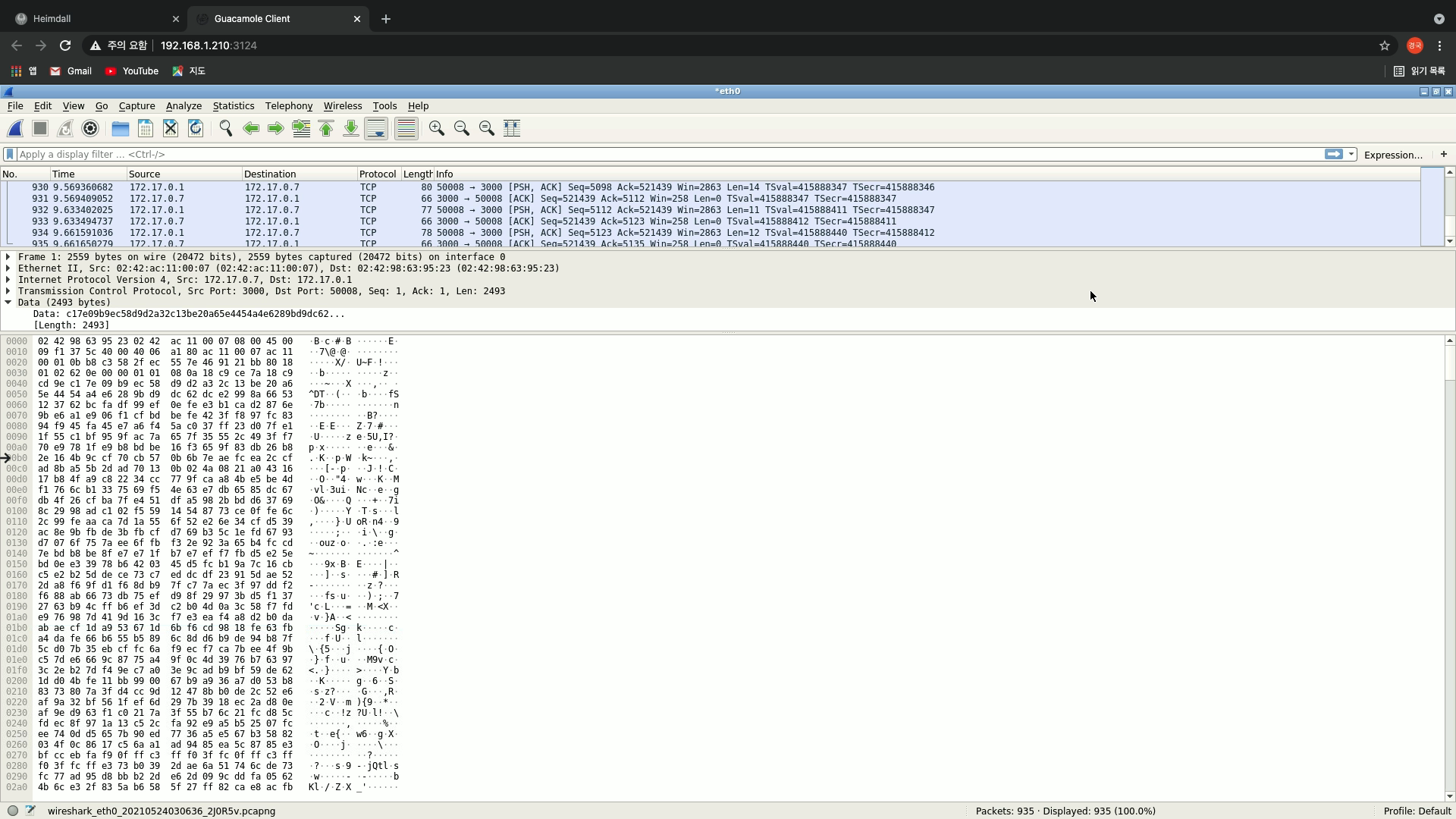 그리고 웹 브라우저에 "http://synology-ip:3124"를 입력하면 와이어샤크가 실행되지만,