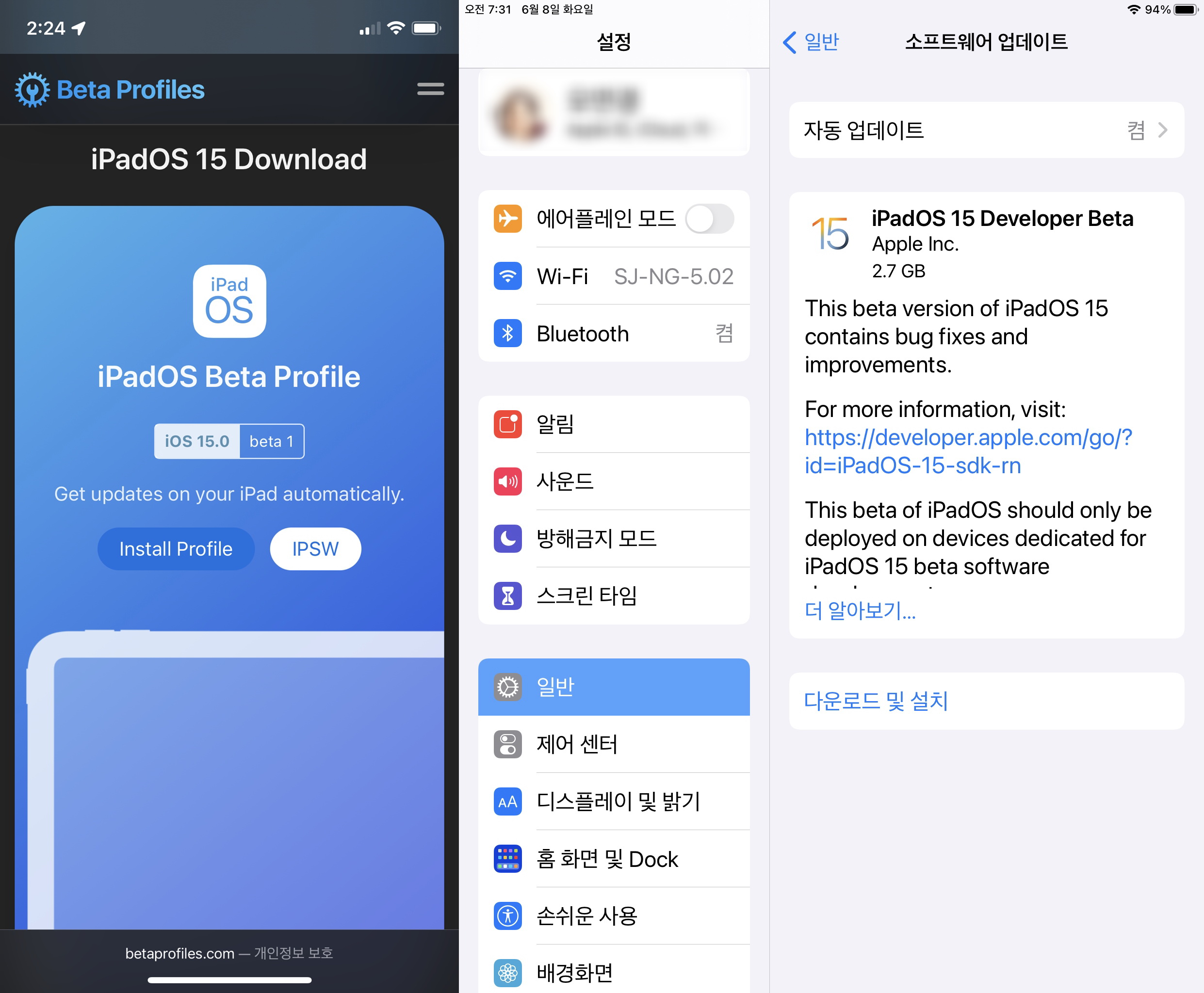 베타 프로파일 종류만 다르고 iOS 15의 설치 방법과 완전 동일함