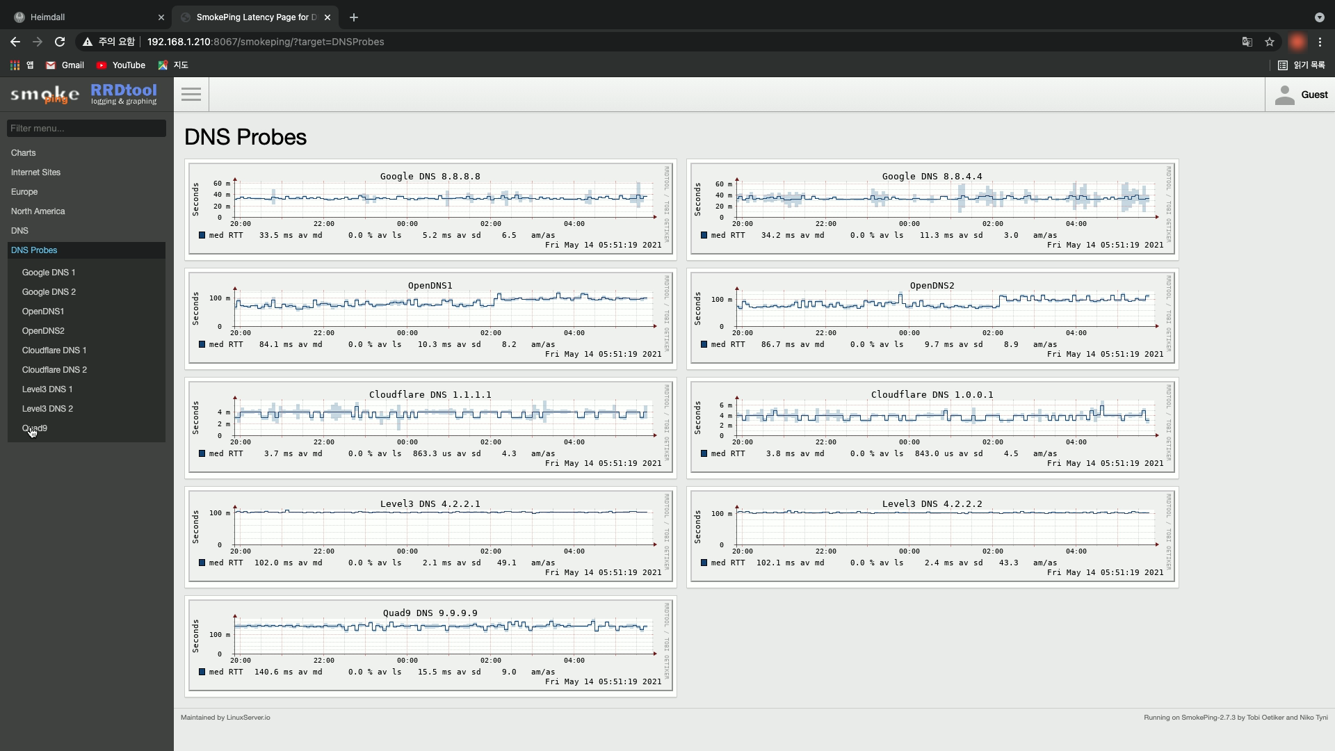 - 2021.05.14 인터넷 핑테스트(Ping Test) 오픈 솔루션인 SmokePing