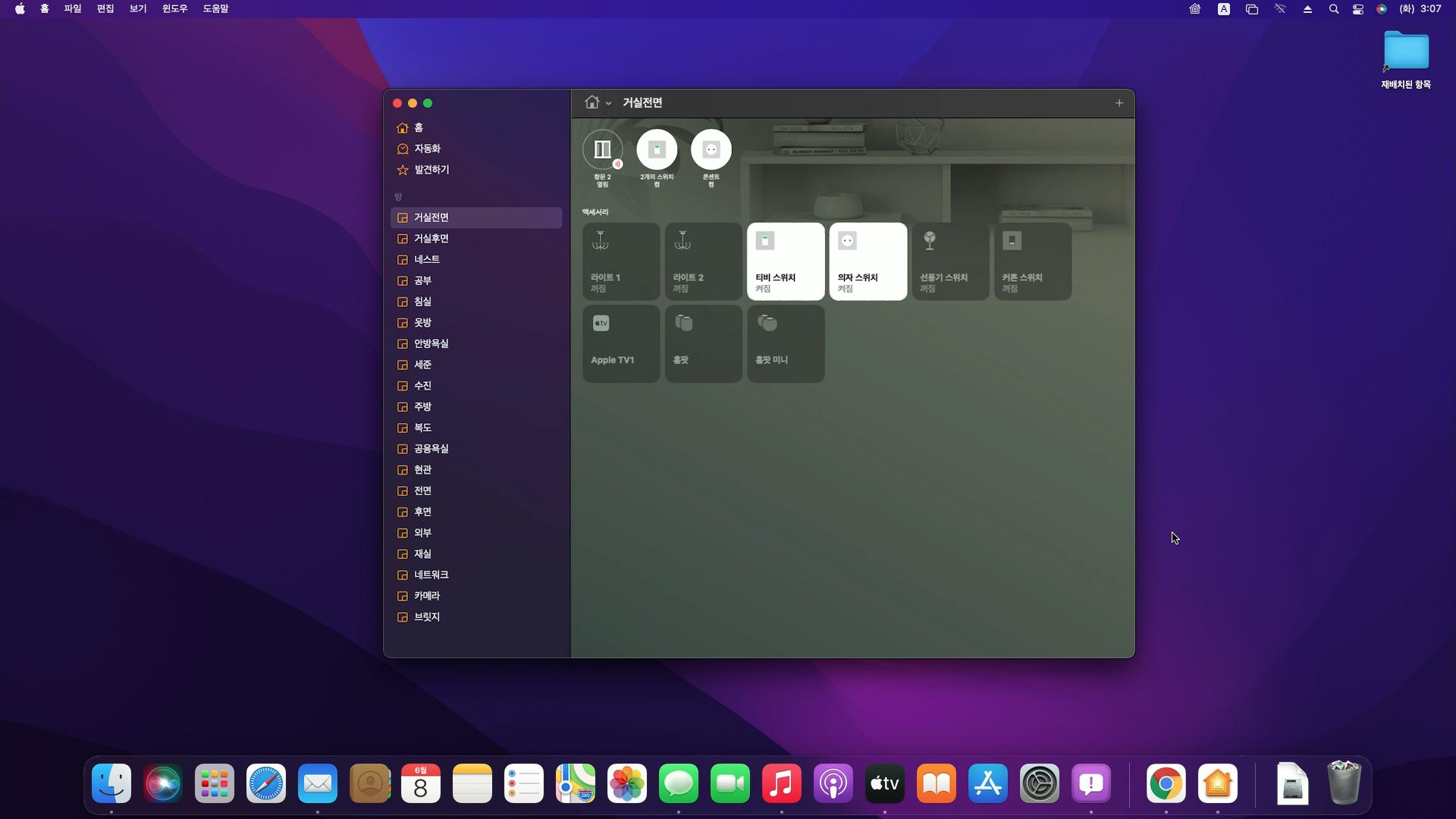 사흘전 업그레이드한 WIFI 재실이 애플 홈앱에서 잘 구동되는지 확인하던 중