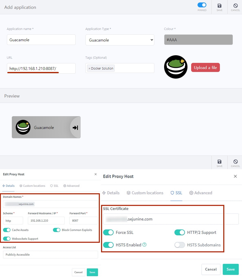 아울러 편리하고 일관성있는 운영을 위하여 heimdall과 Nginx Proxy Manager에도 Guacamole를 등록하였다.