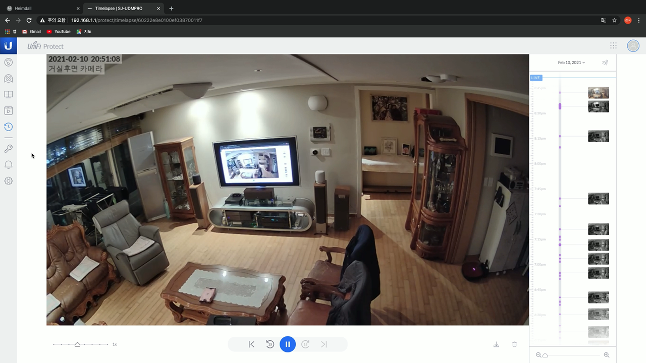 UniFi Protect PC화면도 잠시 살펴 보았으나, 스마트폰 어플과 별반 다르지가 않더라.