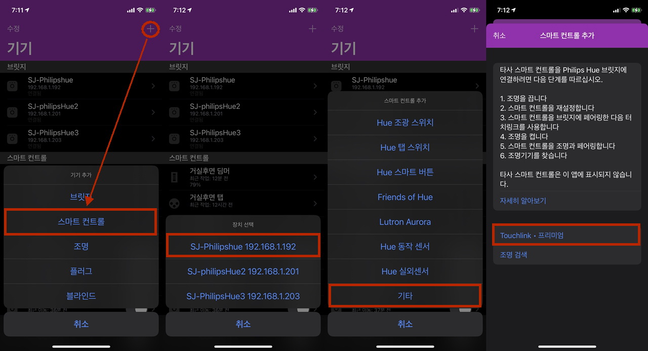 3) '스마트 컨트롤->해당 휴 브릿지->기타->스마트 컨트롤 추가'로 들어가서,