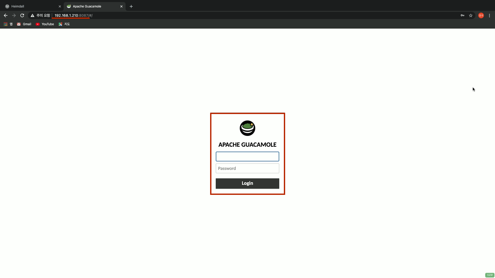 그리고 검색창에 "http://synology-ip:8087"를 입력하면 guacamole를 처음 만나는데,