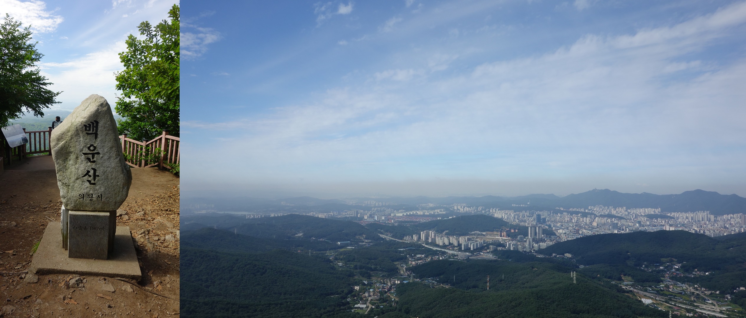 정상에서 백마산 방향으로 능선길을 따라 걷다가, 용인 시내가 내려다 보이는 조망처에서 또 한참을 쉬었다.